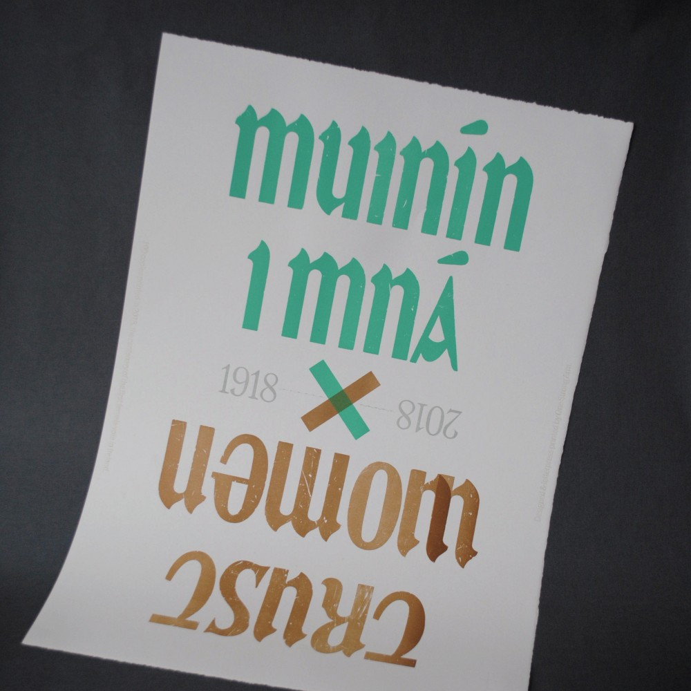 Alongside the Together for Yes identity, design projects created in 2018 included posters, publications and digital materials. A number of submissions centre around three exhibitions. One made an unintentional but no less powerful connection to the referendum, entitled ‘Print, Protest and the Polls: The Irish women’s suffrage campaign and the power of print media, 1908 – 1918’ curated by Donna Gilligan and held at the National Print Museum from the month of the referendum onwards. While planning for the exhibition began in 2017, an opportunity to reflect a contemporary response to the exhibition came in the form of three commissioned limited edition prints by Mary Plunkett, Dave Darcy and Jamie Murphy, at which point the referendum had been called. All three prints feature in the 100 Archive, with the latter two making direct reference to the referendum.