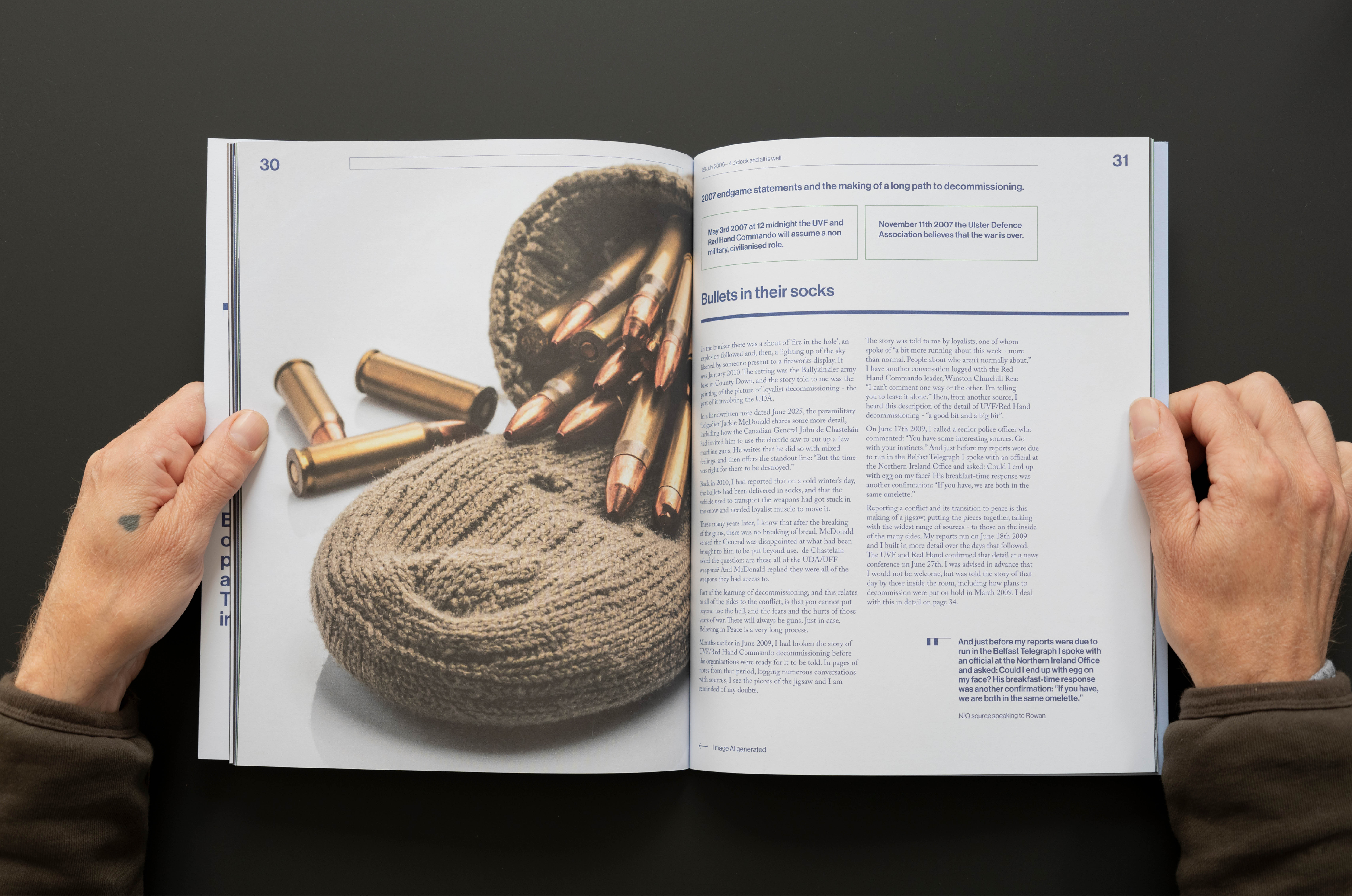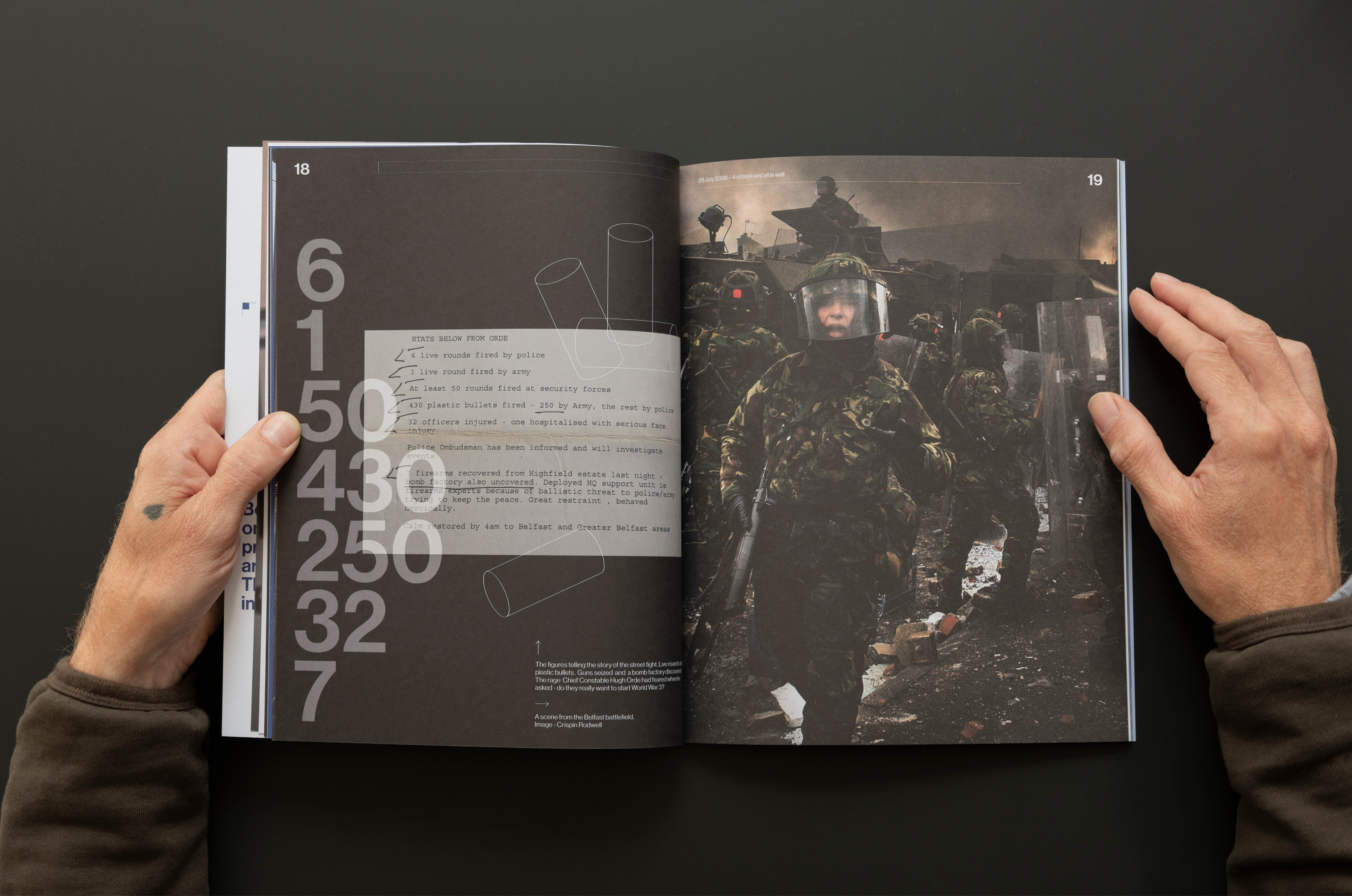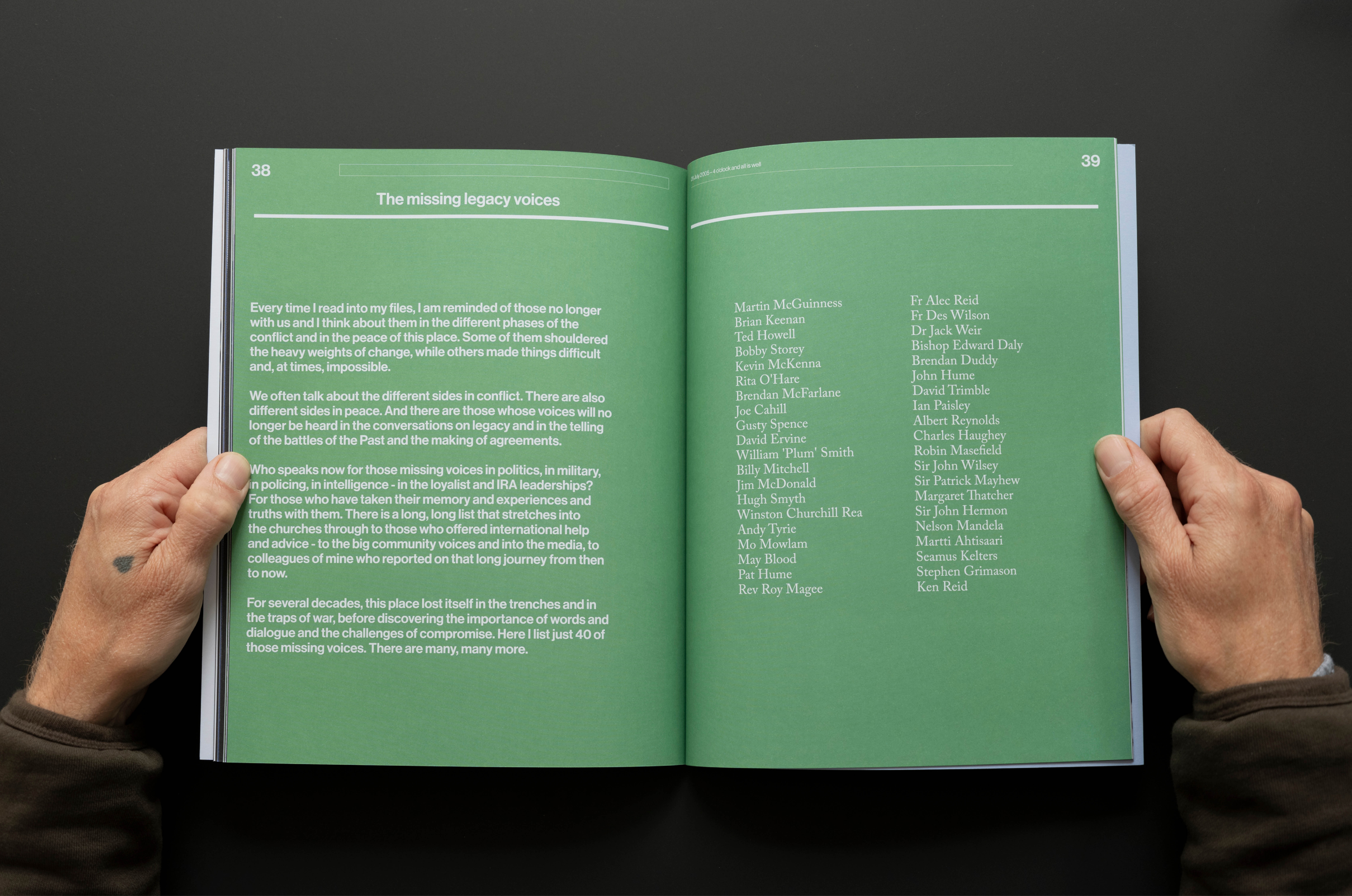The archive project we are developing with The Open University in Ireland and the former BBC correspondent in Belfast Brian Rowan is a series of works designed to create a record of the most significant period in our recent history. Our design approach to this new book in the series leads with a brutalist cover that intentionally sets the tone for the content within. Content that travels the hard road from conflict to peace; mapping the long journey out of war and towards political agreement. Among the key signposts are the quiet dialogues that made the ceasefires of 1994 possible; and the learning that ceasefires are a beginning and not an end.