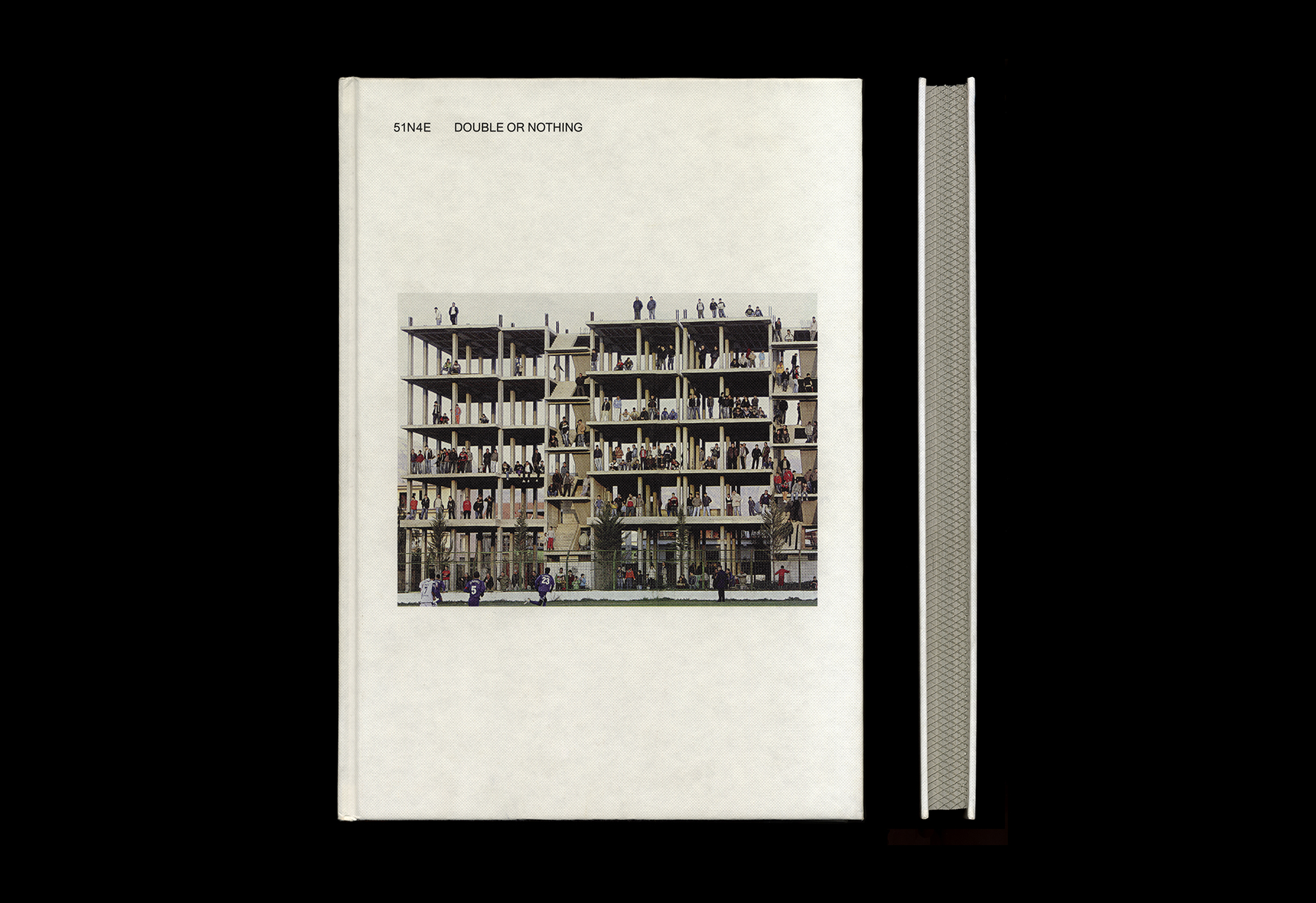 This exhibition catalogue for the Brussels-based architecture practice 51N4E employs a strict set of formal rules. Images appear only on right hand pages, with text and captions on left hand pages. The chronology of the work is de-emphasised, with the projects instead being sequenced in terms of visual relationships, and operating in a kind of loop, encouraging the reader to start wherever they like. The formal case-binding is contrasted inside by rough, newsprint-like stock.