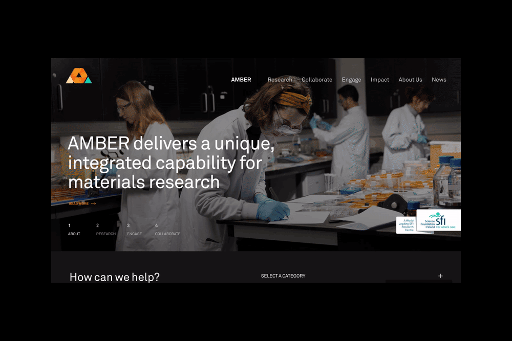 We worked closely with Amber to develop a new website to showcase the research centre's groundbreaking work and to empower the inhouse team to publish rich content with ease. During the discovery phase of the project we identified 4 key content pillars: Research, Industry collaboration, Educational engagement and Scientific outcomes. We structured the website architecture around these sections, supported by further informational sections.