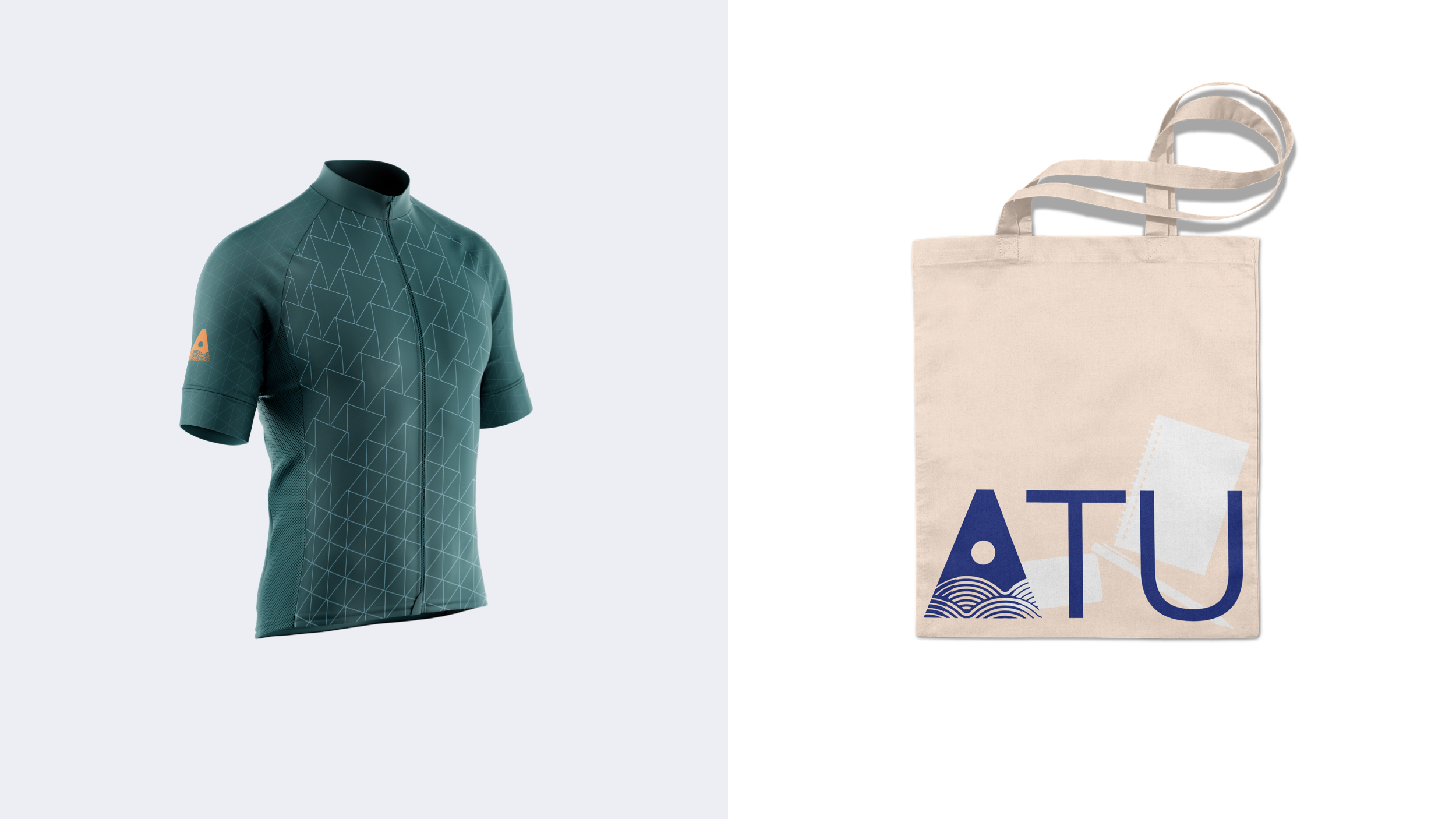 The logo evokes the letter A, cut through with an abstract depiction of the waves and sun. It can exist as a standalone icon, or as part of lock-ups (ATU and OTA) in English and Irish. A set of icons to represents the university campuses and fields of study, as a partner element to typography to provide clarity and differentiation. These sit comfortably alongside the brand typeface Halyard, which was chosen for its simple elegance and broad range of weights and styles. The brand uses colour inspired by the unique landscape of the Atlantic coast, starting in the sea and surf, across the beach and into the land.
