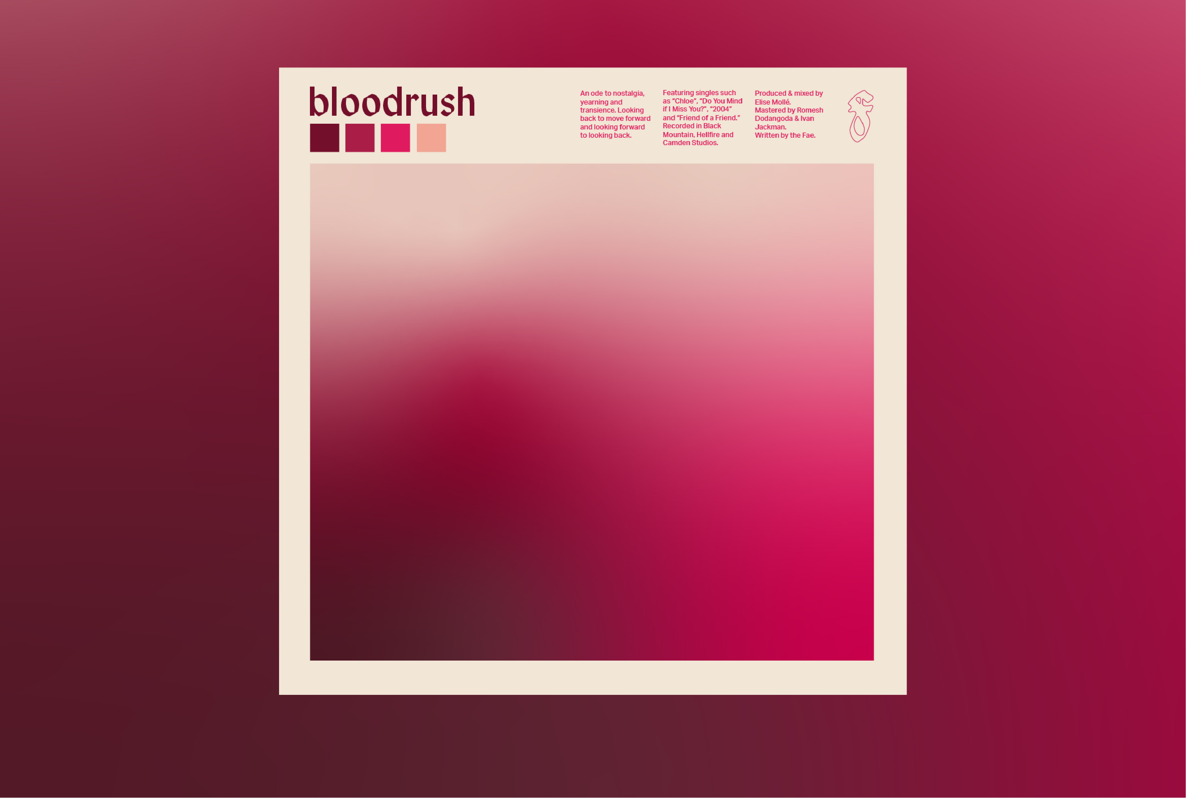 The single artwork and colour palette is inspired by blush palettes, the blood that rushes below the surface of our skin when a certain memory rears its head, and the rose tint that nostalgia places on the past - with the EP artwork a blending of all of these separate elements together.