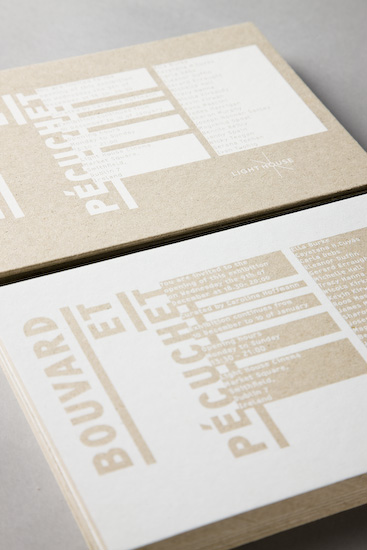 In November 2009, Swollen was commissioned to produce the poster and invitations for ‘Bouvard et Pecuchet’, an exhibition at the Lighthouse curated by Carolina Hoffman.The title of the exhibition was taken from a book by Gustave Flaubert about copy clerks who enjoy the process of copying. Artists featured in the exhibition had been asked to create new pieces of work that were based on other works of art that are currently exhibited at MoMA, New York.Taking our cue from the theme of the book, we based our central theme for the design on the notion of copying and repetition.The invitations were produced twice, one positive and the other, a negative ‘copy’. The poster was an elaboration of this concept, with both the positive and negative elements present together, presenting various layers of information copied on top of one and another.