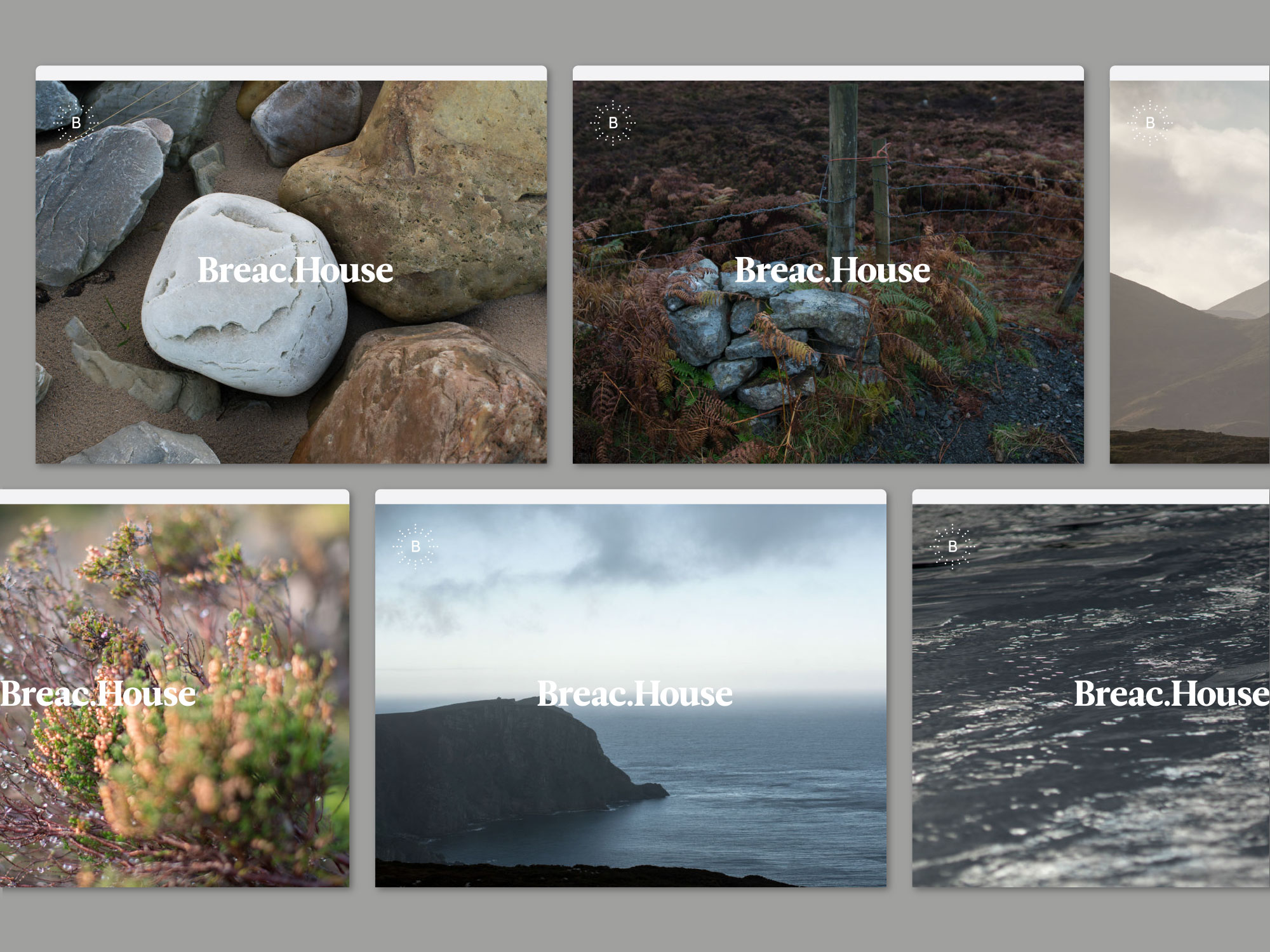 The unique location is central to everything in the project and so we built it into the very fabric of our brand. The house sits on Lurgabrack, or ‘speckled hill’. The word Breac can also mean trout, speckled and stars, all of which capture the unique spirit of place. This idea of the importance of texture, materials and physical experience drove all aspects of the project. From our speckled compass motif that always sits in the northwest corner to imagery that intimately captures the nature of the location at different times of the day and night.