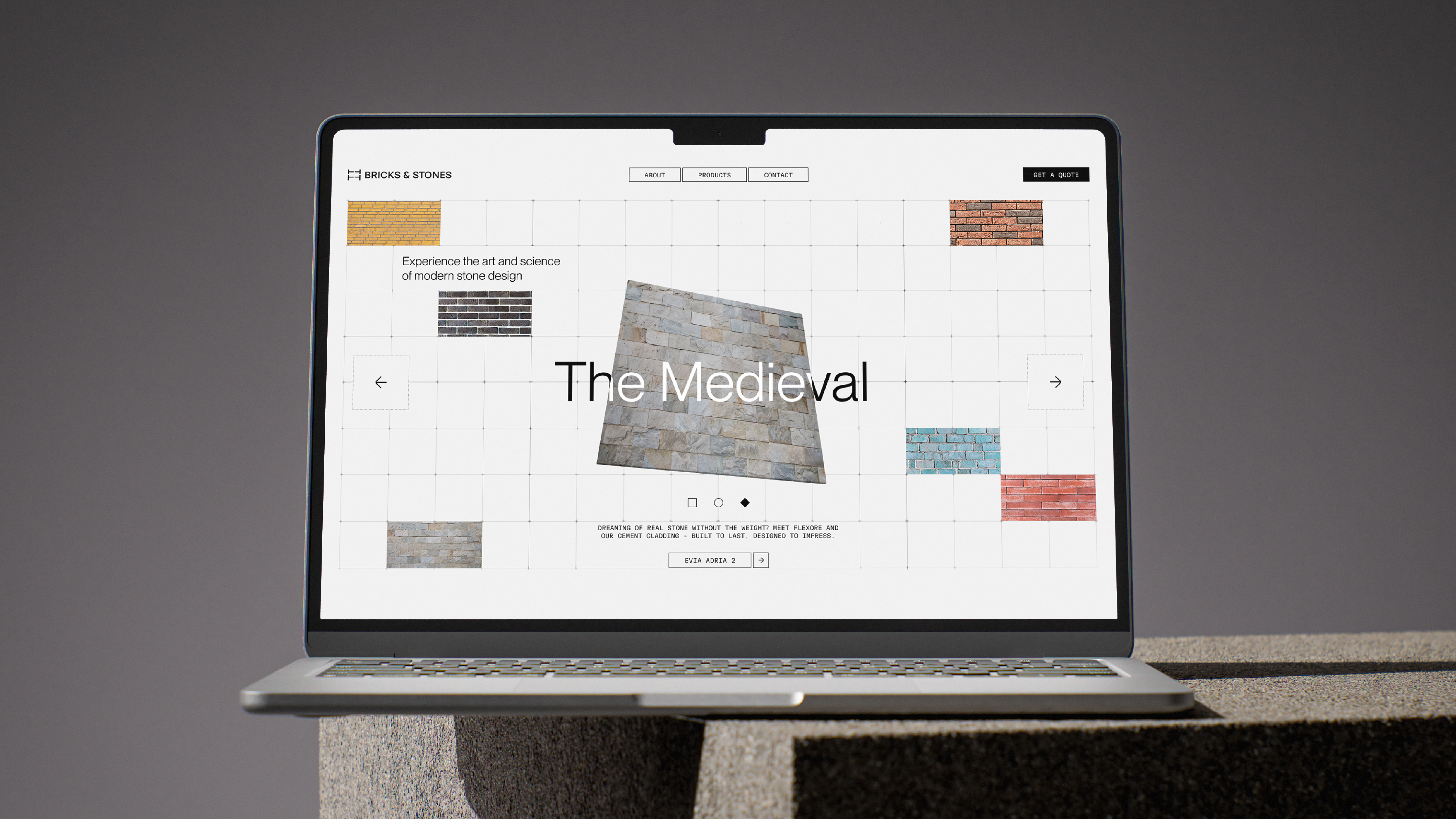 A key strand of the story is the custom icon, a graphic symbol we developed to provide a "light touch" in limited spaces. This mark, alongside a strictly minimal color palette of deep browns, carbons, and rust tones, reflects our commitment to clarity and sophistication. The choice of shades was intentional, mirroring the timeless, earthy hues found in natural stone and brick.