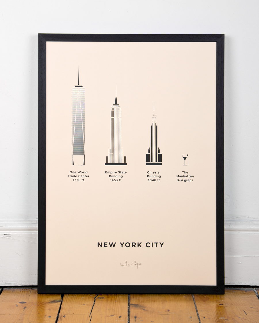 In reaction to many of our family and friends moving to Hong Kong, New York, London, Paris, Berlin and many other cities all over the world looking for work we developed this series of City Prints. We are lucky enough to have been able to visit, sample their signature drinks and be inspired by their new homes.