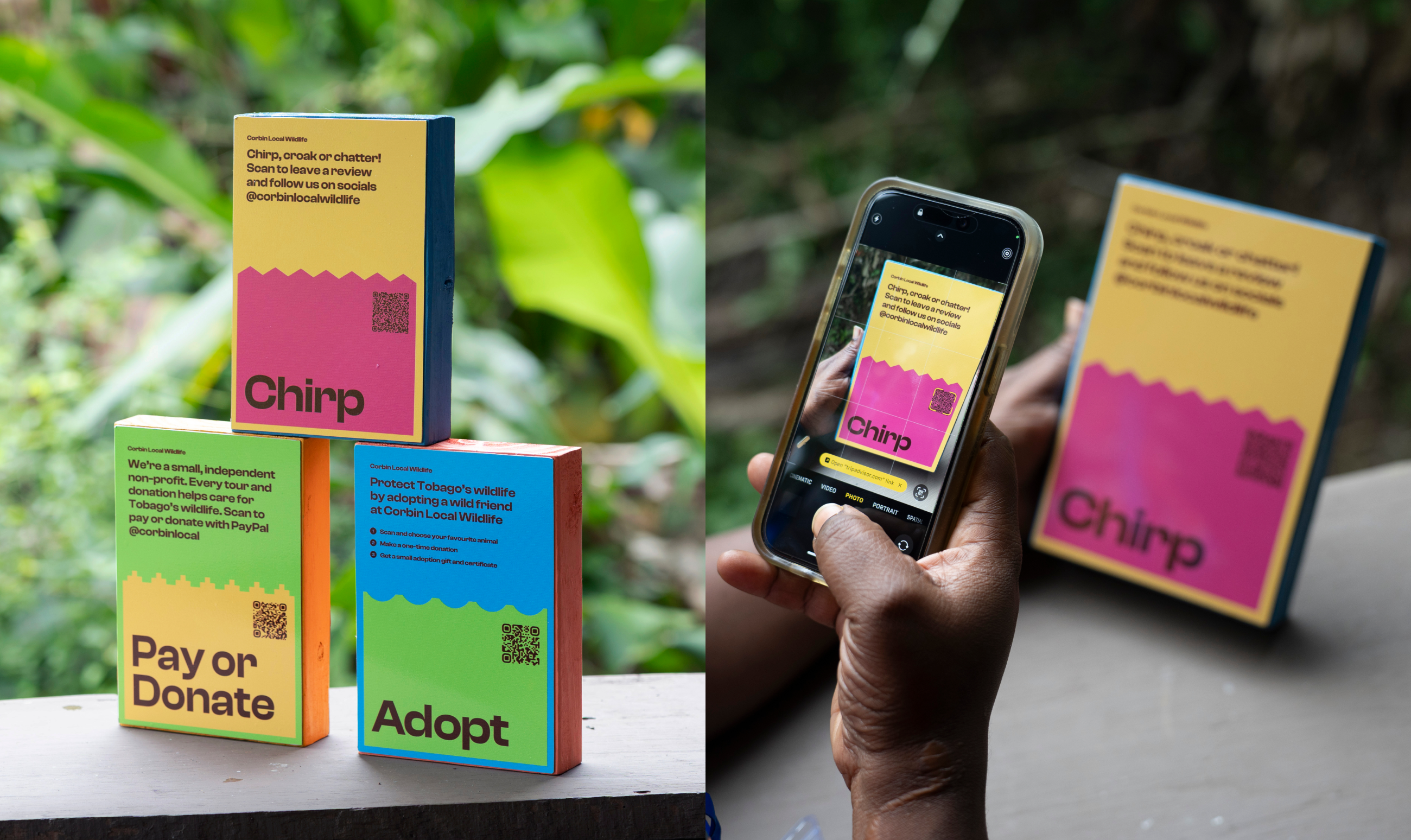 Corbin Local Wildlife is a small but mighty nature reserve in Tobago, focused on the rescue, rehabilitation and education of native wildlife. The co-founders, Ian and Roy, run guided tours and a wildlife relocation service, as well as raise awareness about illegal hunting and the exotic pet trade. Over 9 weeks, we partnered with the team (of three!) to join up a fragmented visitor experience and build simple systems across physical and digital touchpoints.