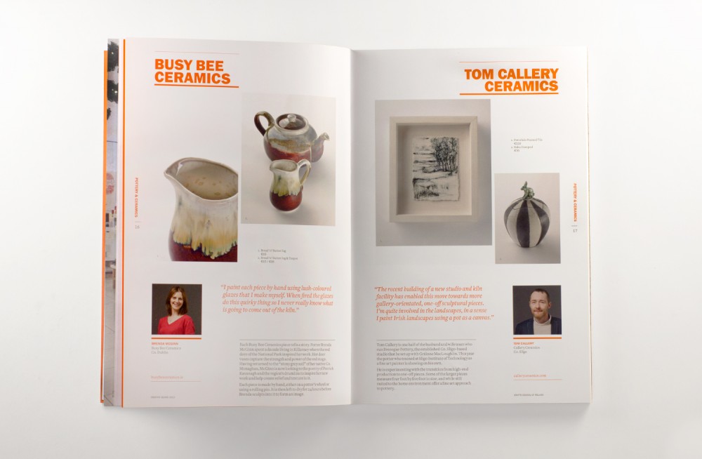 The Creative Island catalogue showcases the work of over 80 Irish designers, jewellers, ceramicists and craft makers. All create work which is both imagined and produced in Ireland. The catalogue presents their work for both local & international buyers.