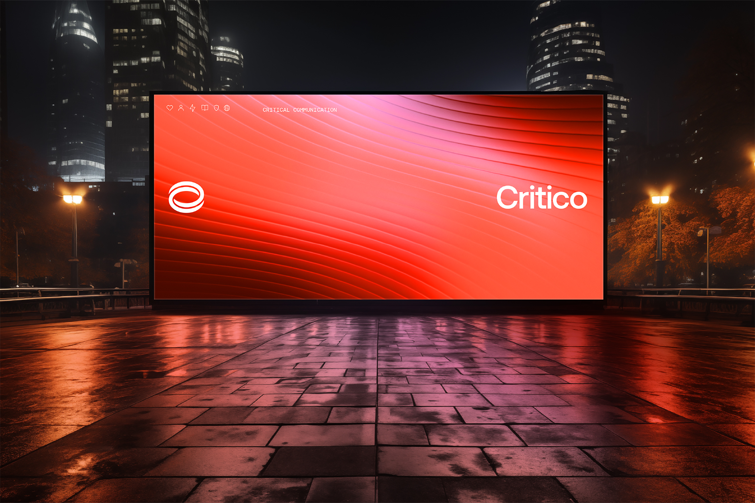 Critico operates across six distinct sectors, each represented by its own unique colour palette, icon, and pattern. These abstract patterns reflect the fluid and dynamic nature of communication. Motion is seamlessly woven into the identity system, reinforcing the brand's forward-thinking and innovative ethos.