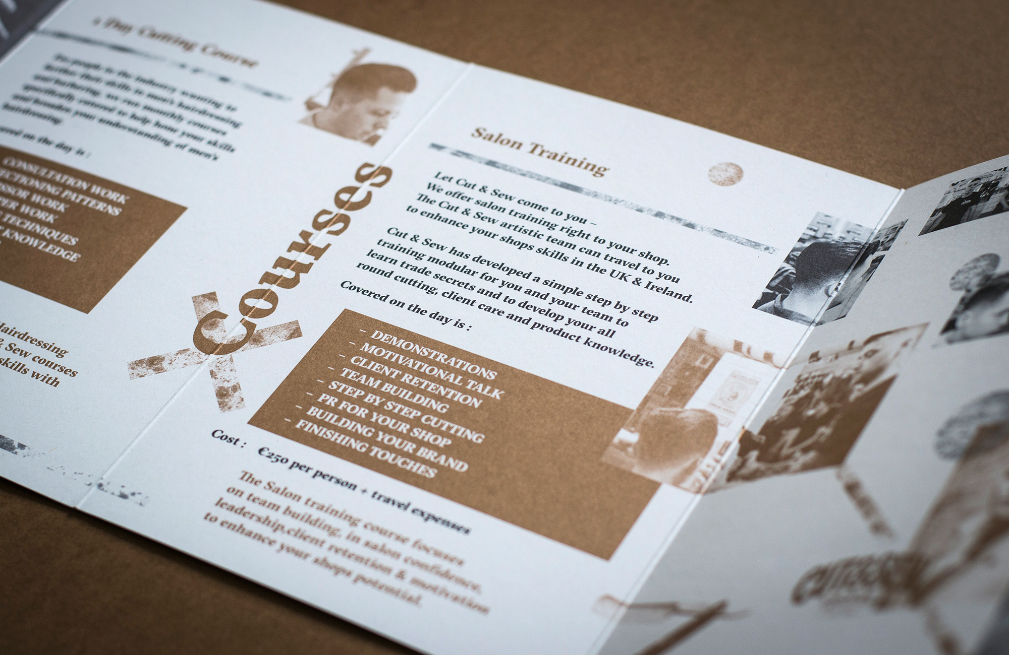 Brochure and artwork concept and design for Ireland's premium barbers – Cut&Sew, Dublin.