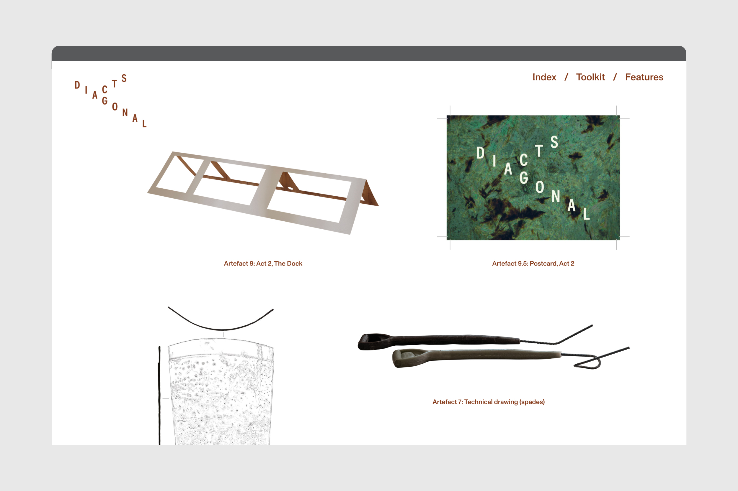 The material outcomes in Diagonal Acts are supported by a range of collaborations, and connected by a public programme of generative elements devised to critically engage audiences in person and online, enhancing and expanding participation and access. From an ovaline access ramp to a digital archiving repository, possibilities for encounter are crafted and considered across platforms.