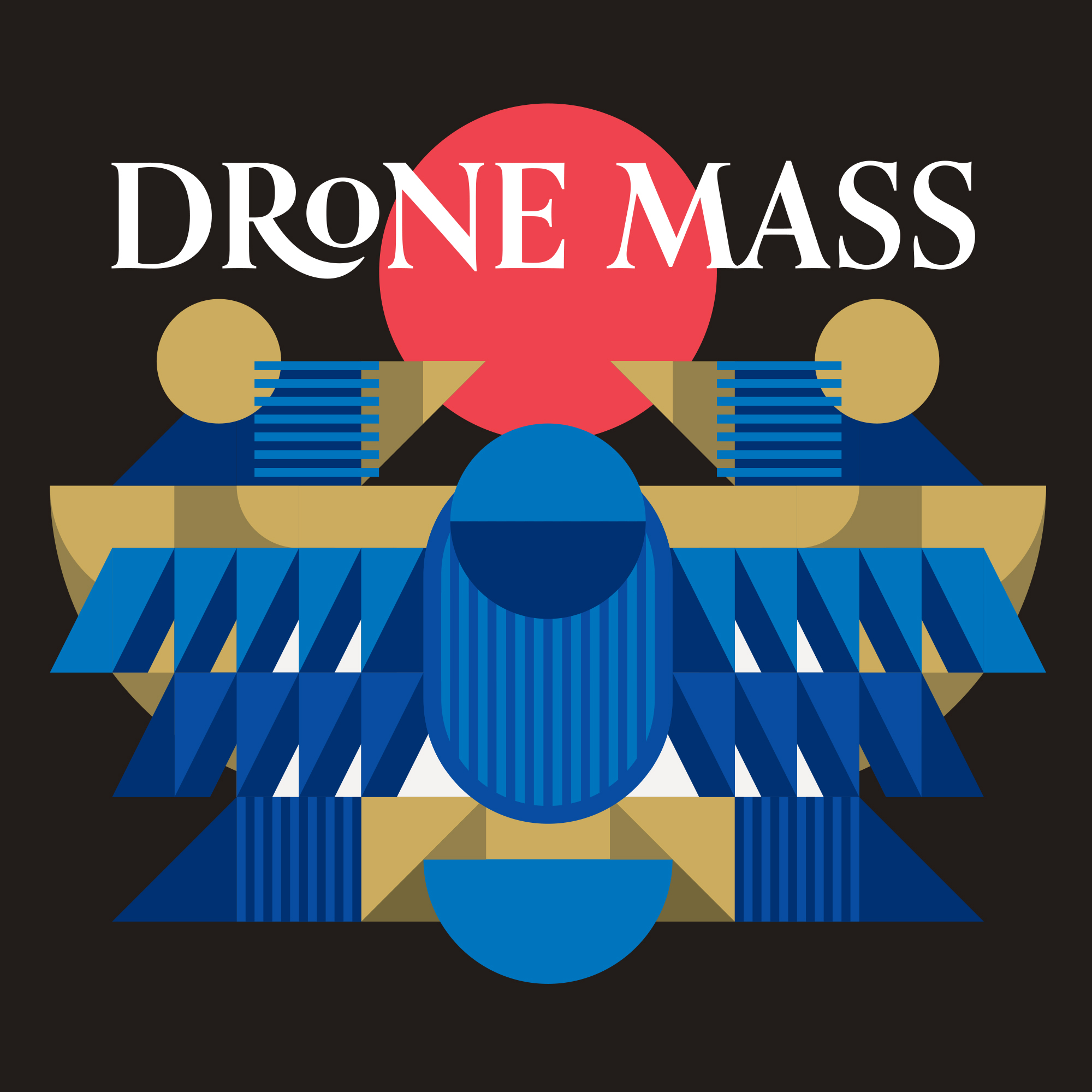 The illustration is a stylised abstraction of early Egyptian imagery—the scarab represents rebirth, resurrection, and transformation, and ties into the ideas of the Holy Trinity coming forth from the ‘great invisible Spirit’. The design responds to the idea of the drone as sound and, through the scarab’s outstretched wings, alludes to the drone as object.