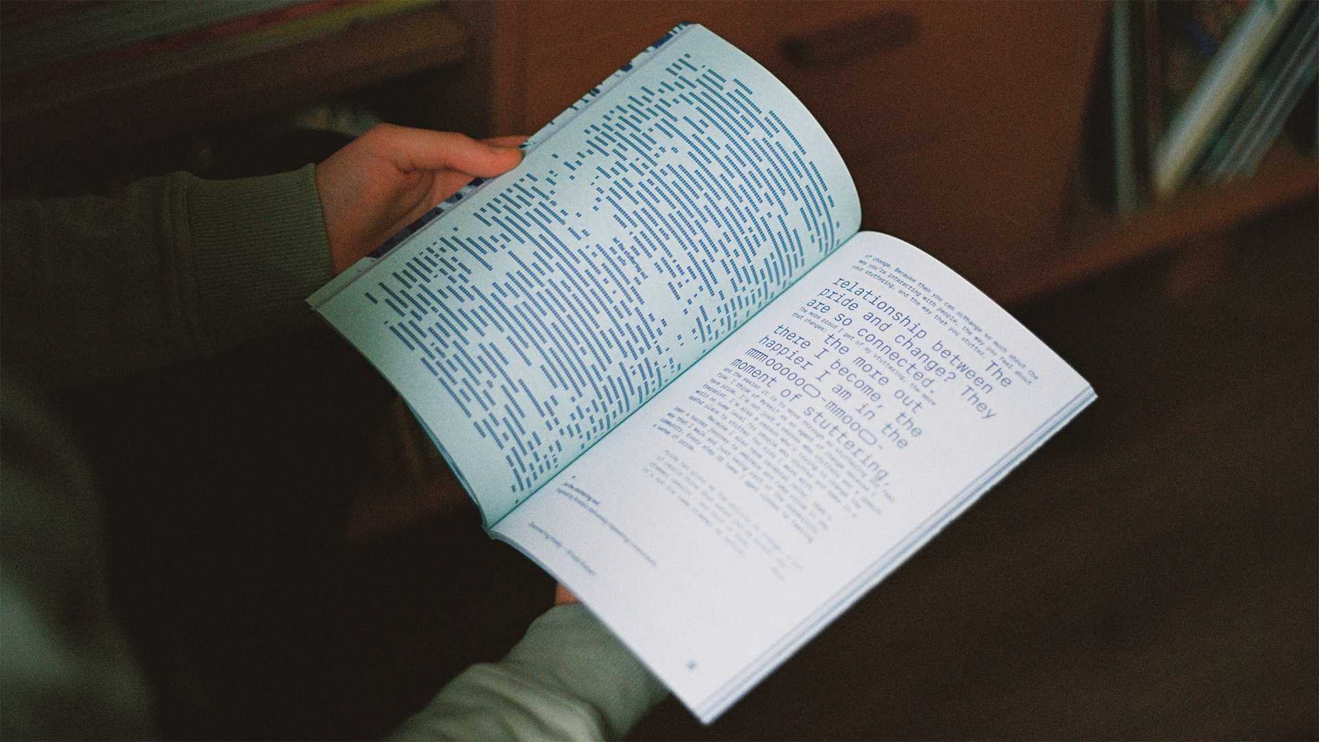 We designed the magazine, asking: what could/should a stammering magazine look like? The cover unfolds to reveal an inner dialogue amongst stammering letterforms. The issue's title stammers across the spine. The 'pull quotes' remain in their paragraphs, challenging the idea of the perfectly-said phrase. Each interview is set in Dysfluent Mono, a font representing the person’s stammer. The expressive, typographic illustrations are inspired by the uniqueness of the interviewee's voice. The magazine creatively questions society’s obsession with hyper-fluency which leaves little room for organic moments in language.