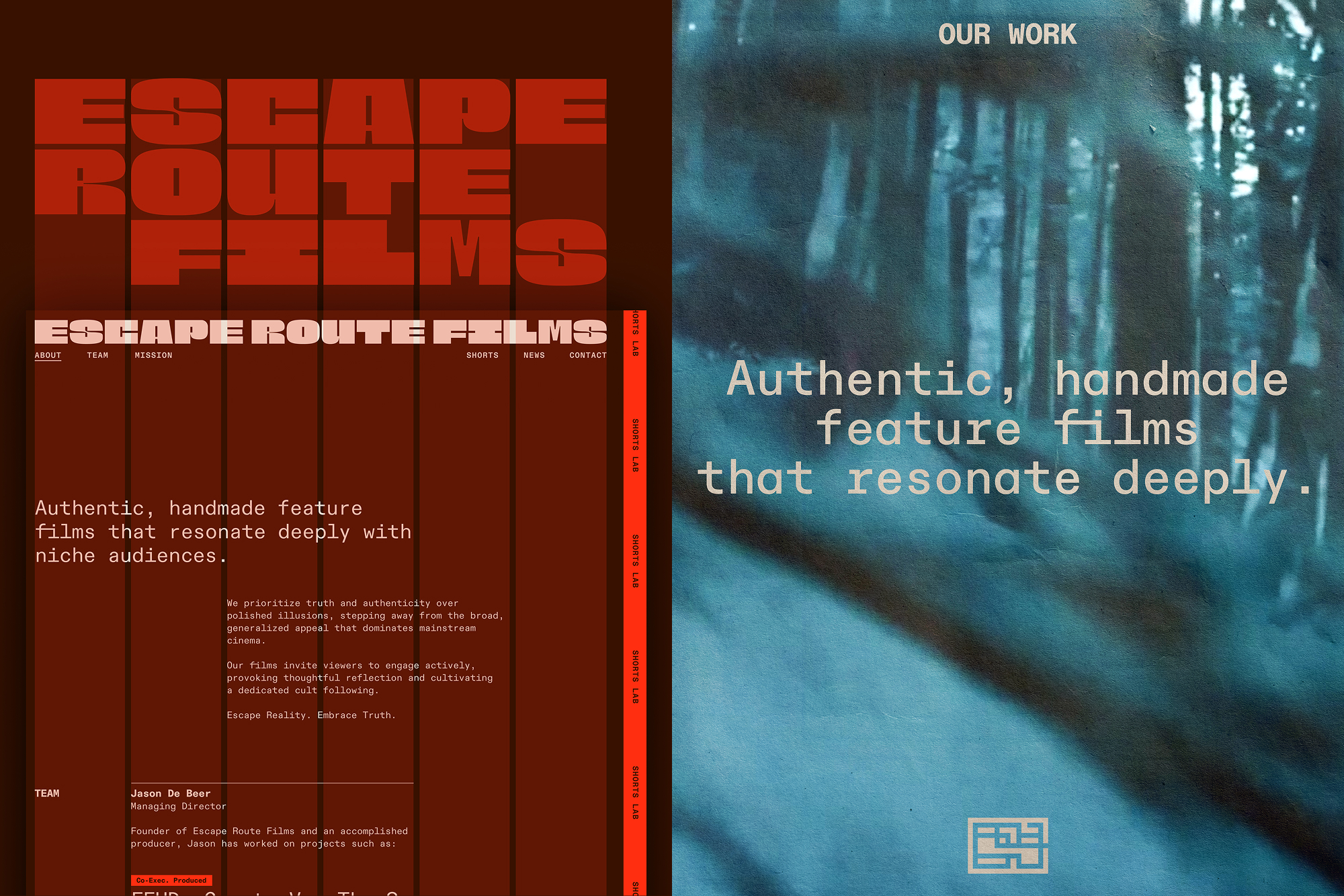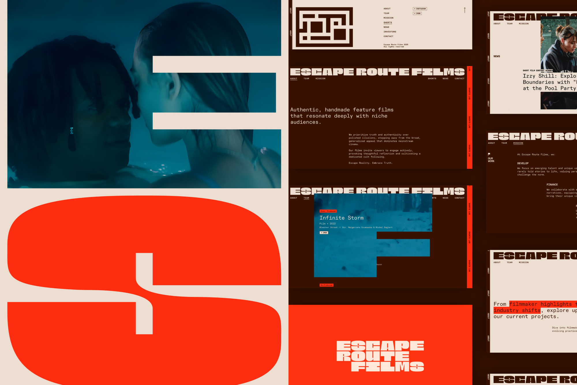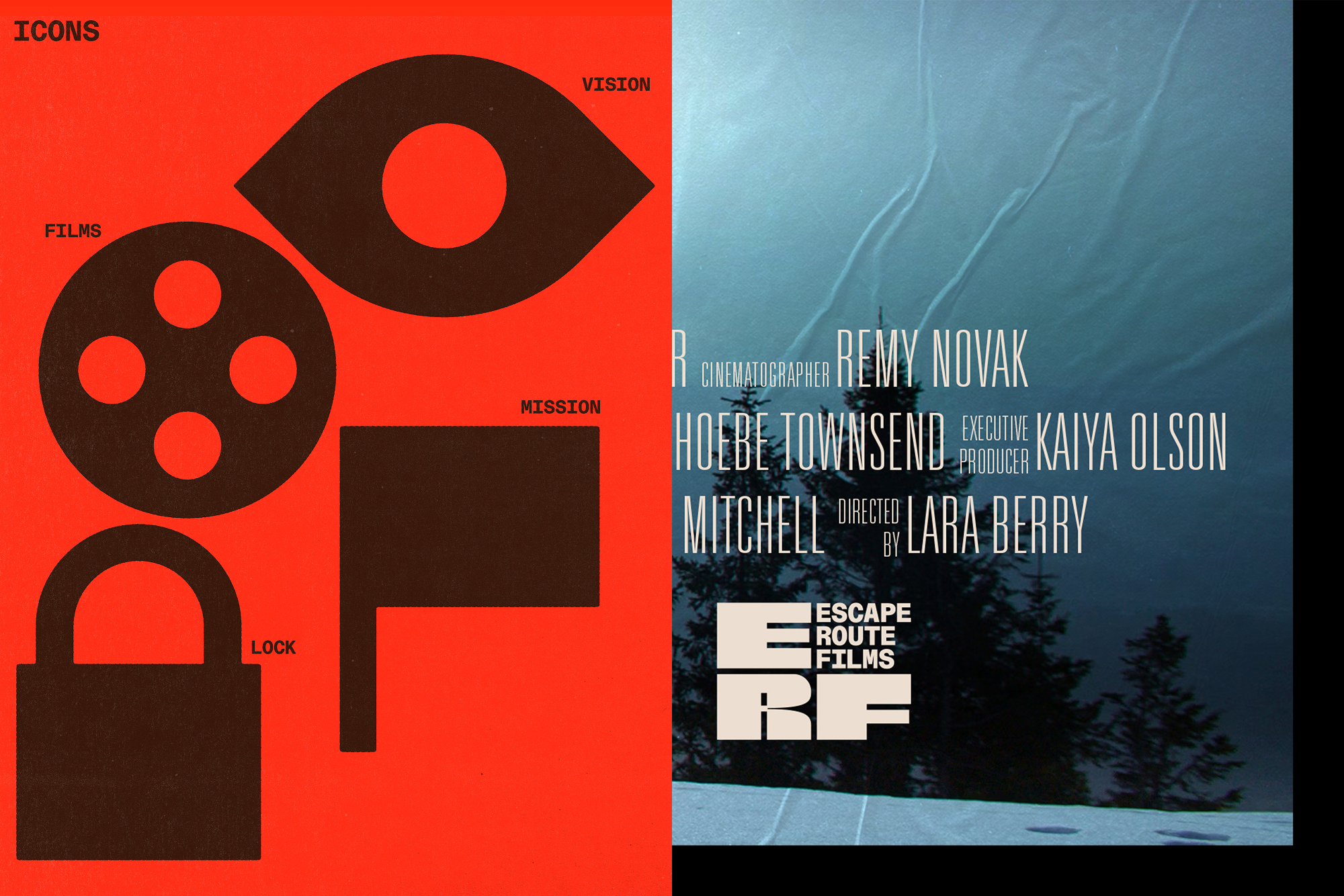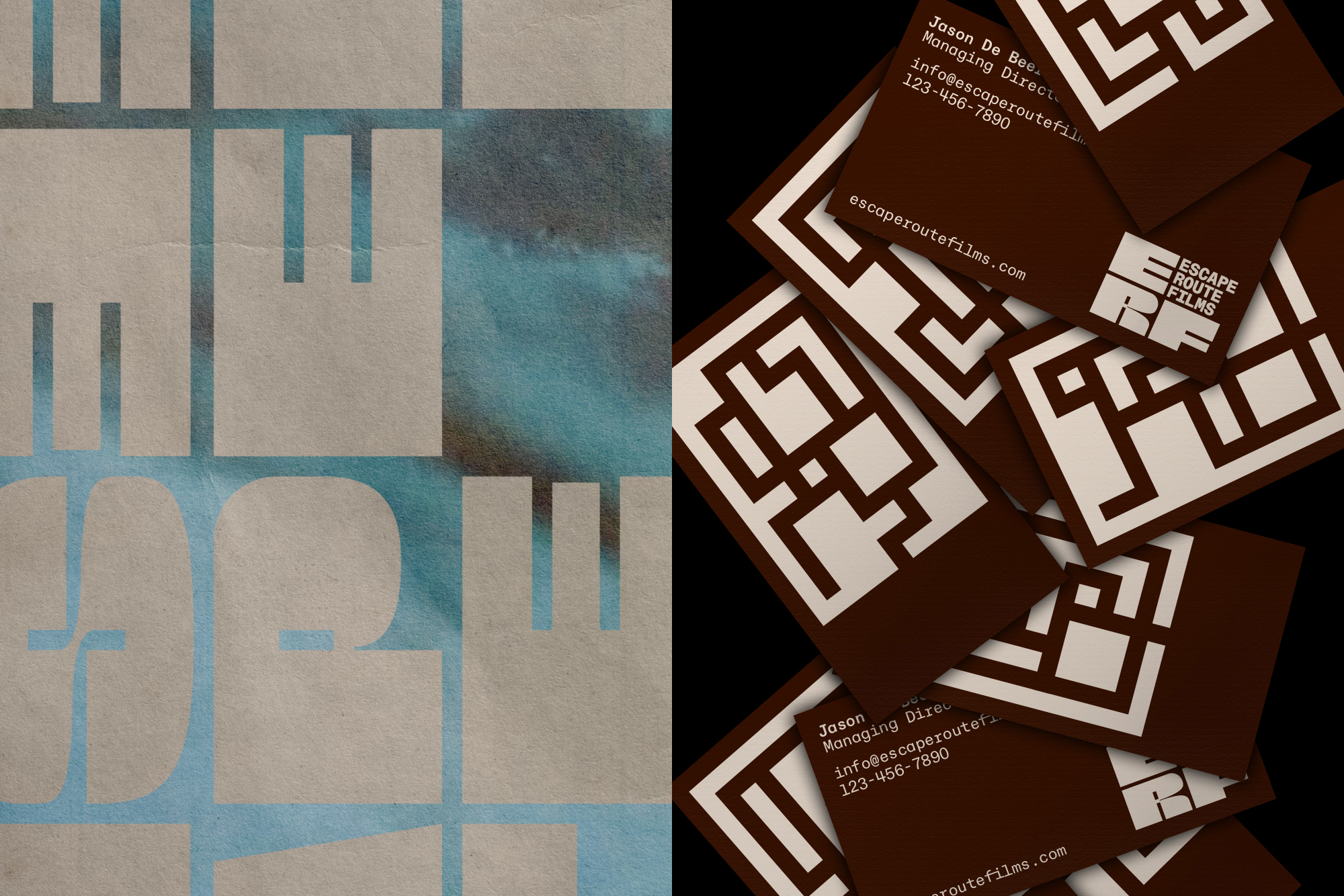 Brand identity system and website for Escape Route Films – a new film production company focused on supporting unique stories by emerging talent.