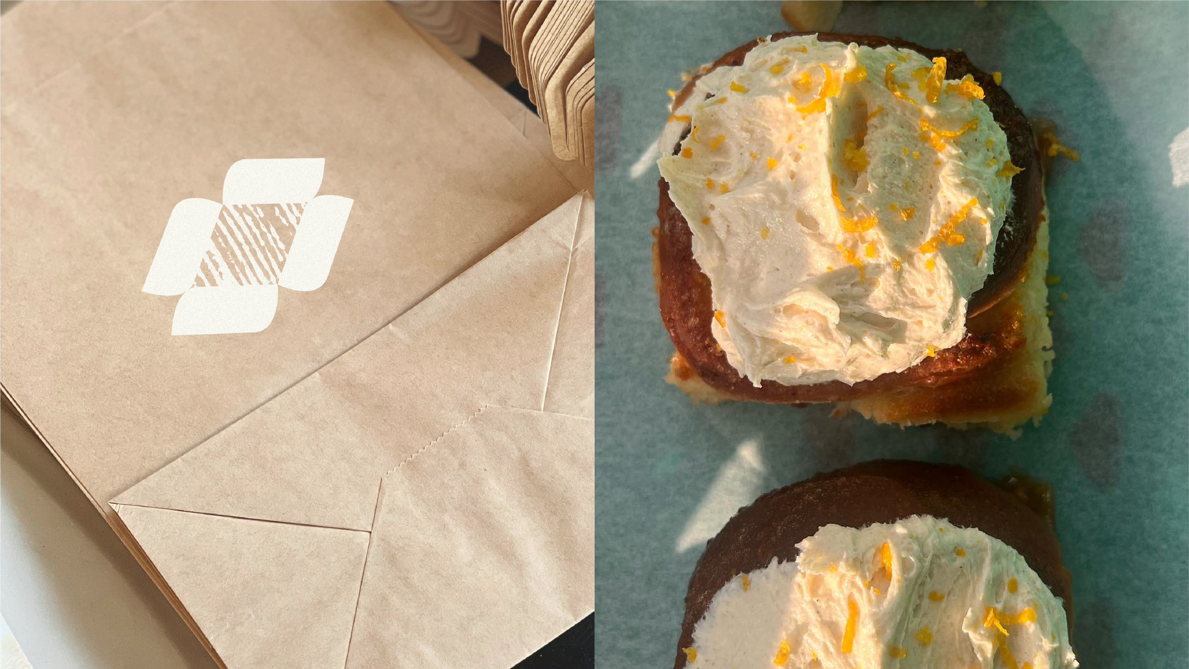 The identity draws inspiration from the art of lamination, the careful folding and layering that gives pastries their light, delicate structure. A simple diamond fold becomes the central motif, symbolising this process while creating a versatile frame for imagery and texture. Subtle texture details echo the final glaze, giving a gentle nod to the finishing touch that brings each pastry to life.