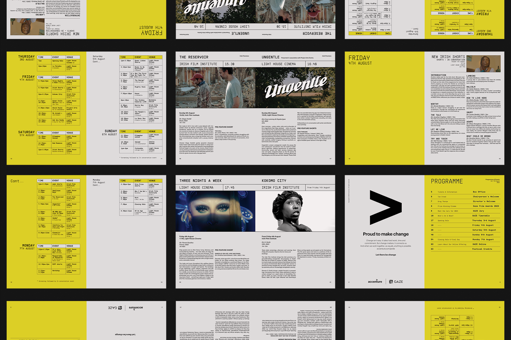 GAZE's visual identity is inspired by research into the history of queer resistance in Ireland, riffing on protest posters and underground nightclub leaflets. Rooted in our past but aiming its sights on the future, the design puts shape around that which cannot be contained or defined. Namely, queer joy.