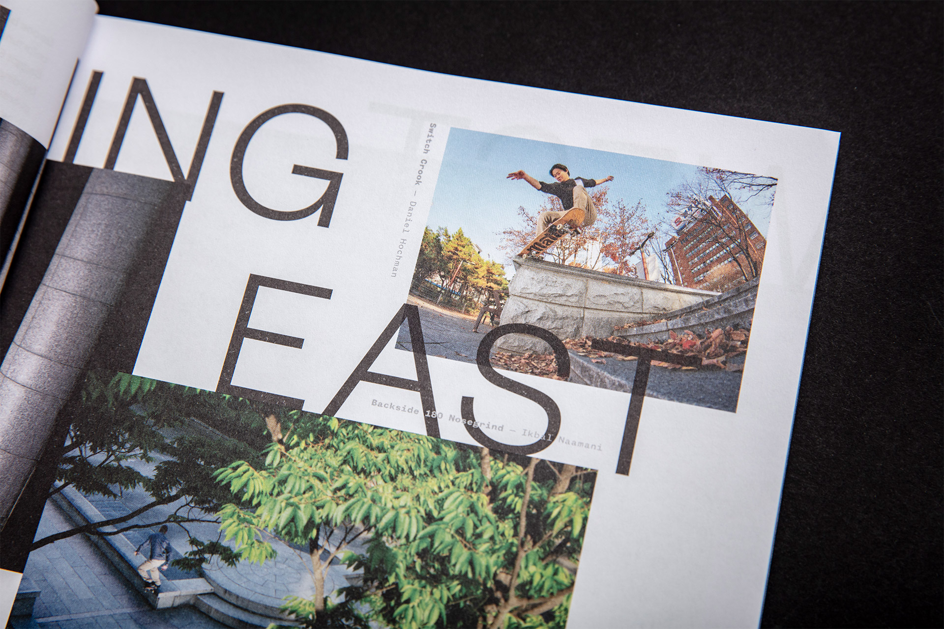 The format and specification were chosen to differentiate the publication from handmade zines and the advertising-driven magazines which proliferate the space. Imagery was layered, inferring the building of something piece by piece, a reference to the DIY attitude at the core of Irish skateboarding. A gestural calligraphic serif was used for the masthead and internal credits, referencing the graft and hands-on nature of the activity.