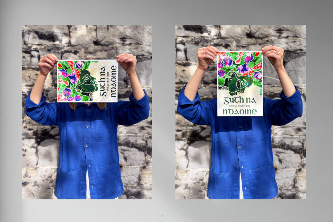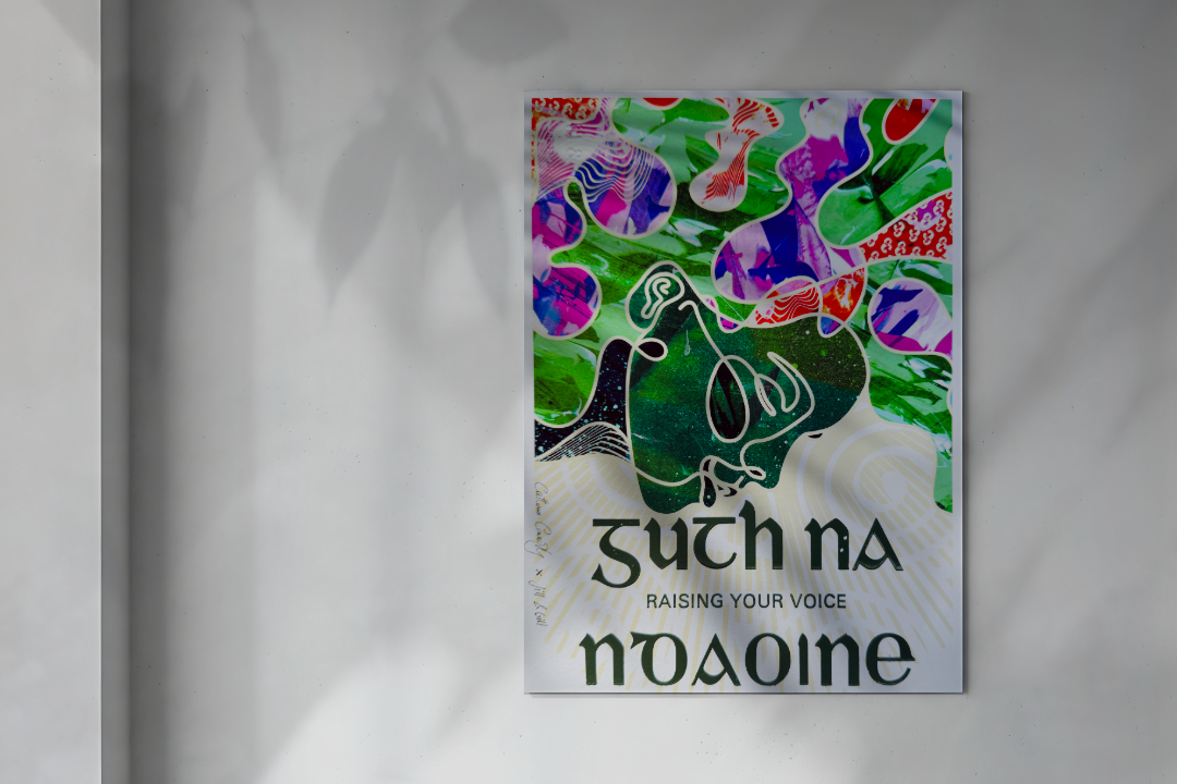 The work responds to a presidential campaign context and is anchored by the phrase “Guth na nDaoine” (Irish for Raising your Voice”). The central challenge was to translate an abstract concept of voice into a visual form that felt assertive and emotionally resonant, while remaining inclusive and grounded in Catherine's campaign.