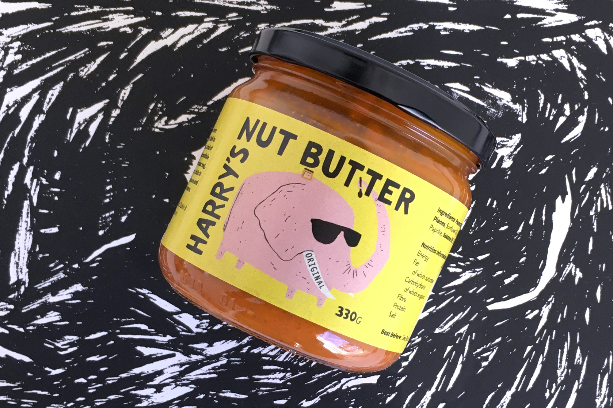 Harry approached me to design the identity & labels for Harry’s Nut Butter – a slightly sweet, kind of salty nut butter he had developed while working in the Fumbally Café in Dublin. It was clear that he wanted the design to be fun and playful, reflecting his personality.