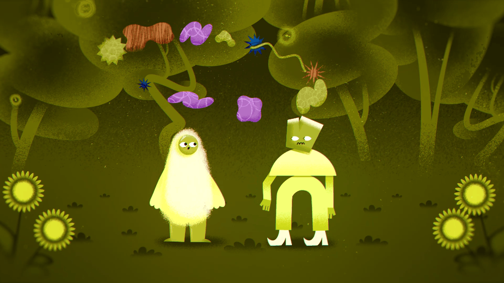 The character-led script was brought to life by animator Maya Remenyi, whose style of animation adds levity and humour. The visualisation of stammering was limited to just abstract shapes so the short film can work in as many languages as possible. So far, it has been translated into Japanese, French and Portuguese.