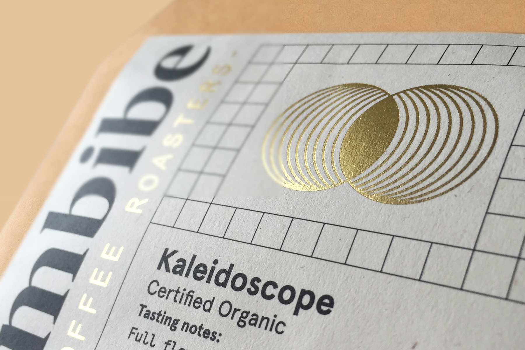 We worked on a re-brand for Dublin based coffee roasters, Imbibe. We created a set of 3 labels for their Kaleidoscope, Monochrome and Technicolour blends of coffee. Each of the labels includes a gold foil embossing symbol that is unique to that blend. The symbols created are based on old Inca symbols that are unique to the Colombia and Bolivian regions that the coffee originates. We also created a set of tasting cards for each of the blends which was included in the launch packs of the blends and in stores.