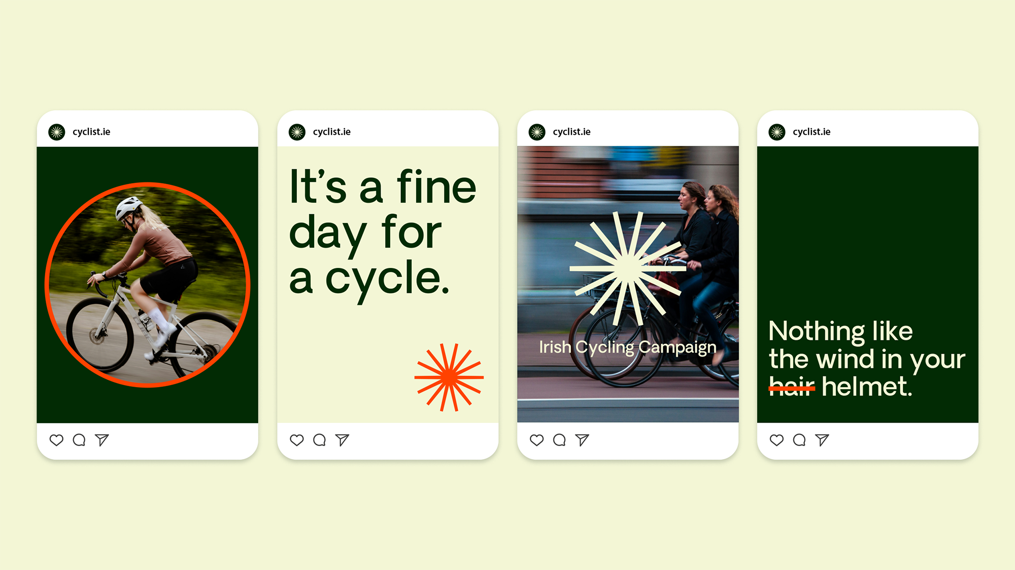 The Irish Cycling Campaign is a network of 1000+ passionate and knowledgeable cycling advocates across Ireland. They believe cycling is a key solution to many of our society’s challenges – improving public health, protecting the environment, and strengthening the economy. Their challenge to us was to create an identity that would resonate with everyone interested in cycling, regardless of how casual or passionate that relationship may be.
