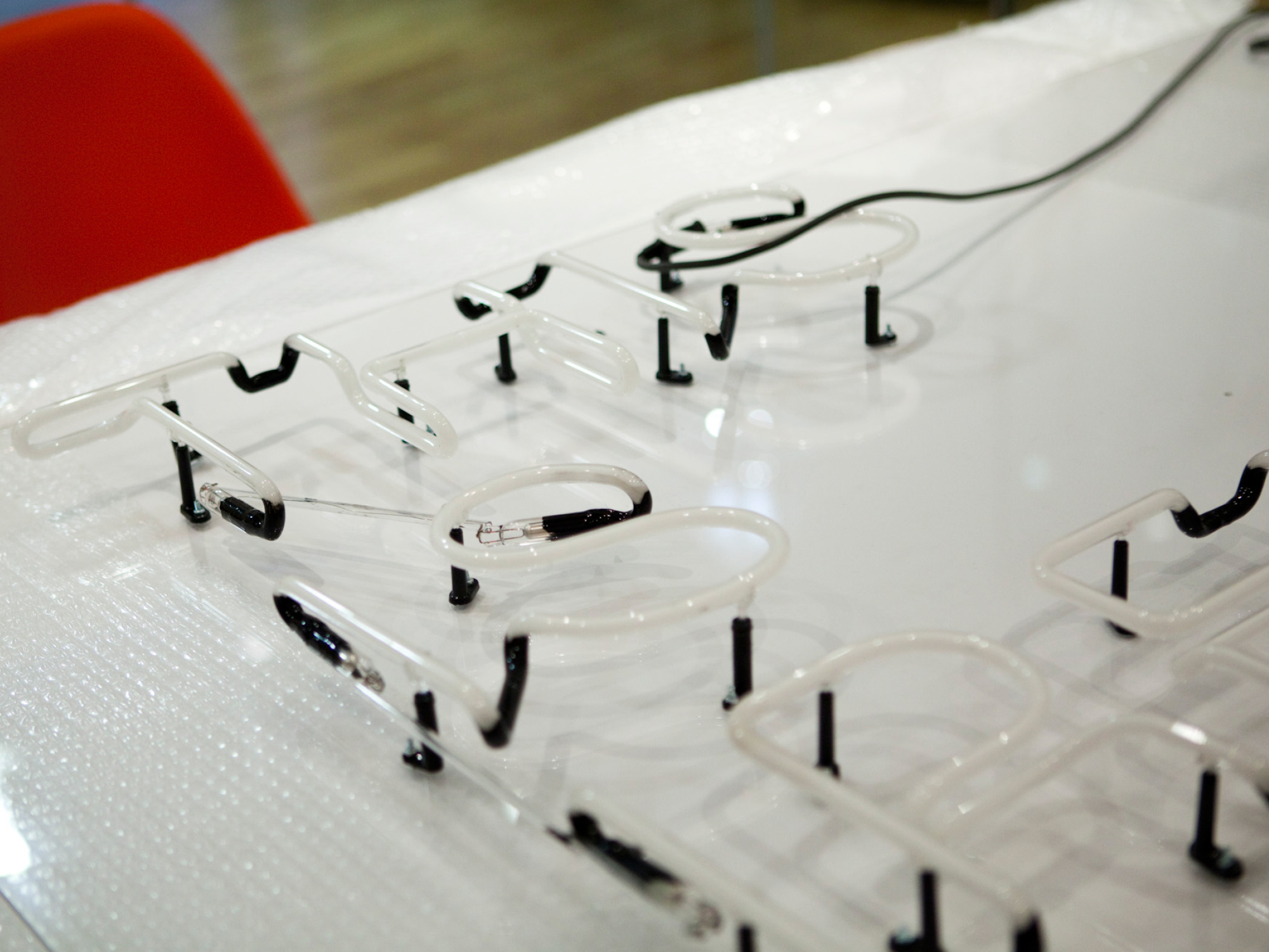 The production catalogue is one of the most important pieces of the Irish Film Board’s communications, it’s used at all the major international film festivals. For the 2010 edition, were given the theme “This is Irish Film”. We considered a cost-effective signage method that dates back almost as far as cinema itself – neon. We commissioned the magenta neon sign and photographed it in our studio. The resulting image sits on the cover of the catalogue and the magenta used in the sign carries throughout the book. The cover was printed with a high gloss finish to contrast with the uncoated finish on the inside.