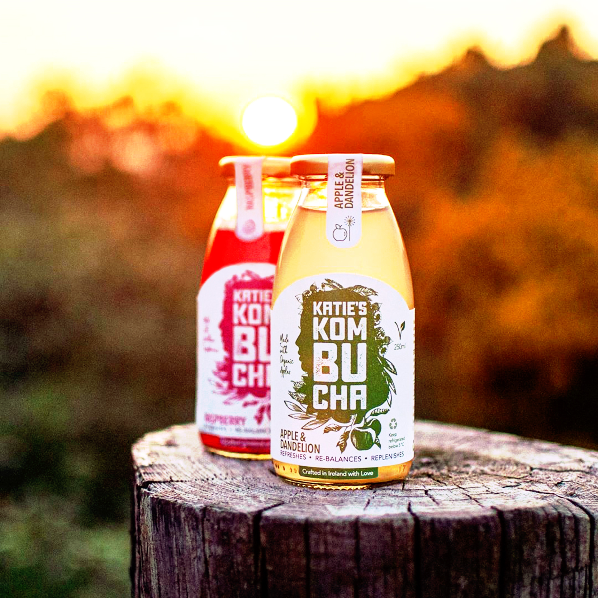 Katie’s Kombucha is naturally fermented in small batches and is a naturally functional food. There are two flavours launched to date – ‘Raspberry’ (flavoured with 100% Wicklow raspberries) and ‘Apple & Dandelion’ (flavoured with 100% organic apples). It is unpasteurised, sustainably produced, vegan, gluten-free and has recyclable packaging. Katie’s Kombucha refreshes, rebalances, replenishes the body.