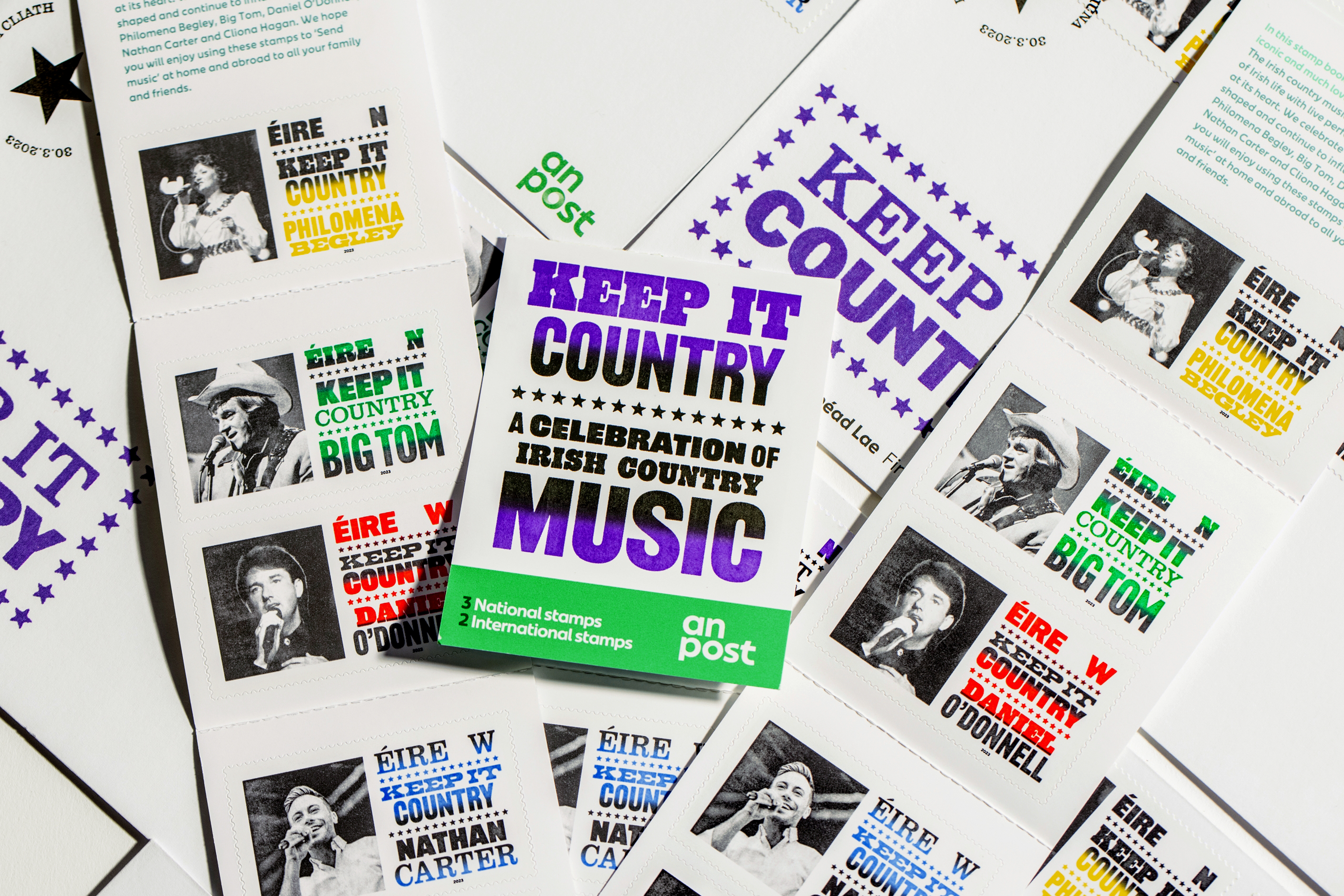 An Post commissioned us to design a series of stamps honouring five iconic and much loved Irish Country Singers. By focusing on the visual vernacular created by letterpress printing, we were able to combine references to posters created for community events in rural Ireland with the rich visual history of the American country music that influenced its Irish counterparts.