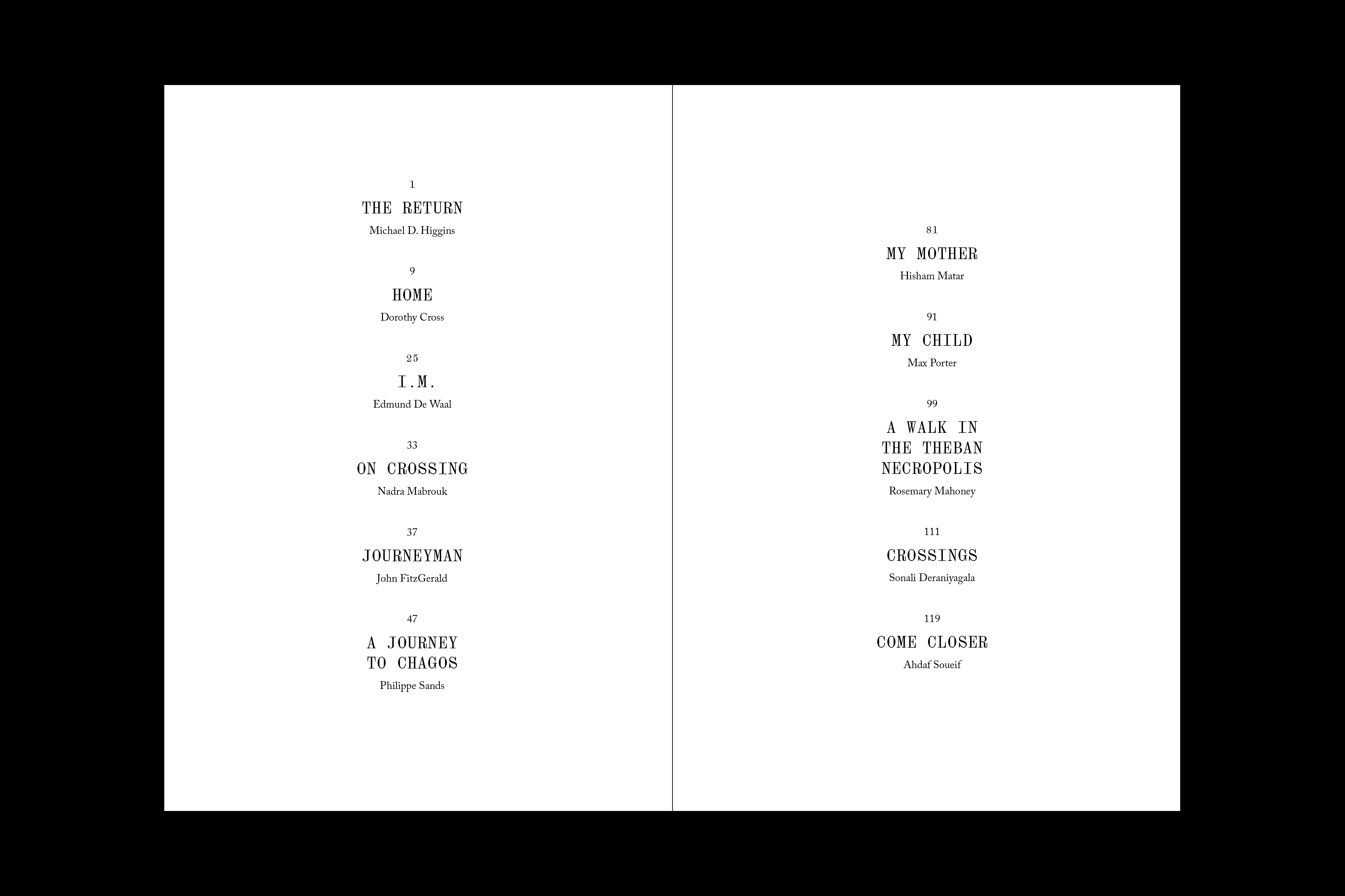 Featuring writing by: Max Porter, Sonali Deraniyagala, Edmund de Waal, John Fitzgerald with Nadra Mabrouk, President Michael D. Higgins, Rosemary Mahoney, Hisham Matar, Philippe Sands, Ahdaf Soueif and Dorothy Cross.