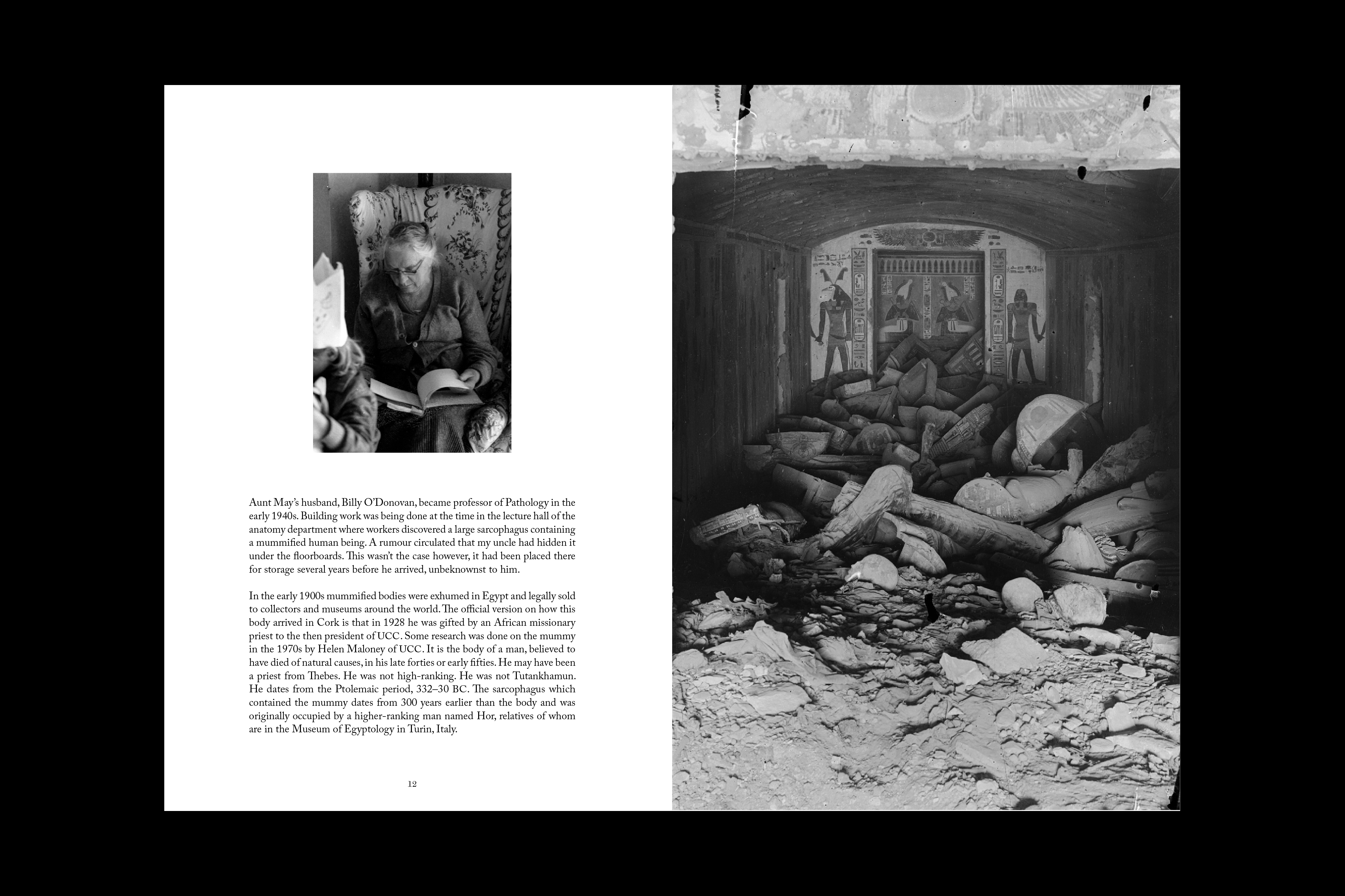 In 2019 Dorothy Cross recalled a story of an Egyptian mummy that had been hidden away in the archives of the anatomy department at University College Cork for decades. For Cross, the next step she needed to take seemed as natural to her as any of her work – the mummy and sarcophagus must be returned to its homeland. In beginning this act, and this journey, Cross set out to create an event across place and time, with music, literature and celebration – an act of kinship.