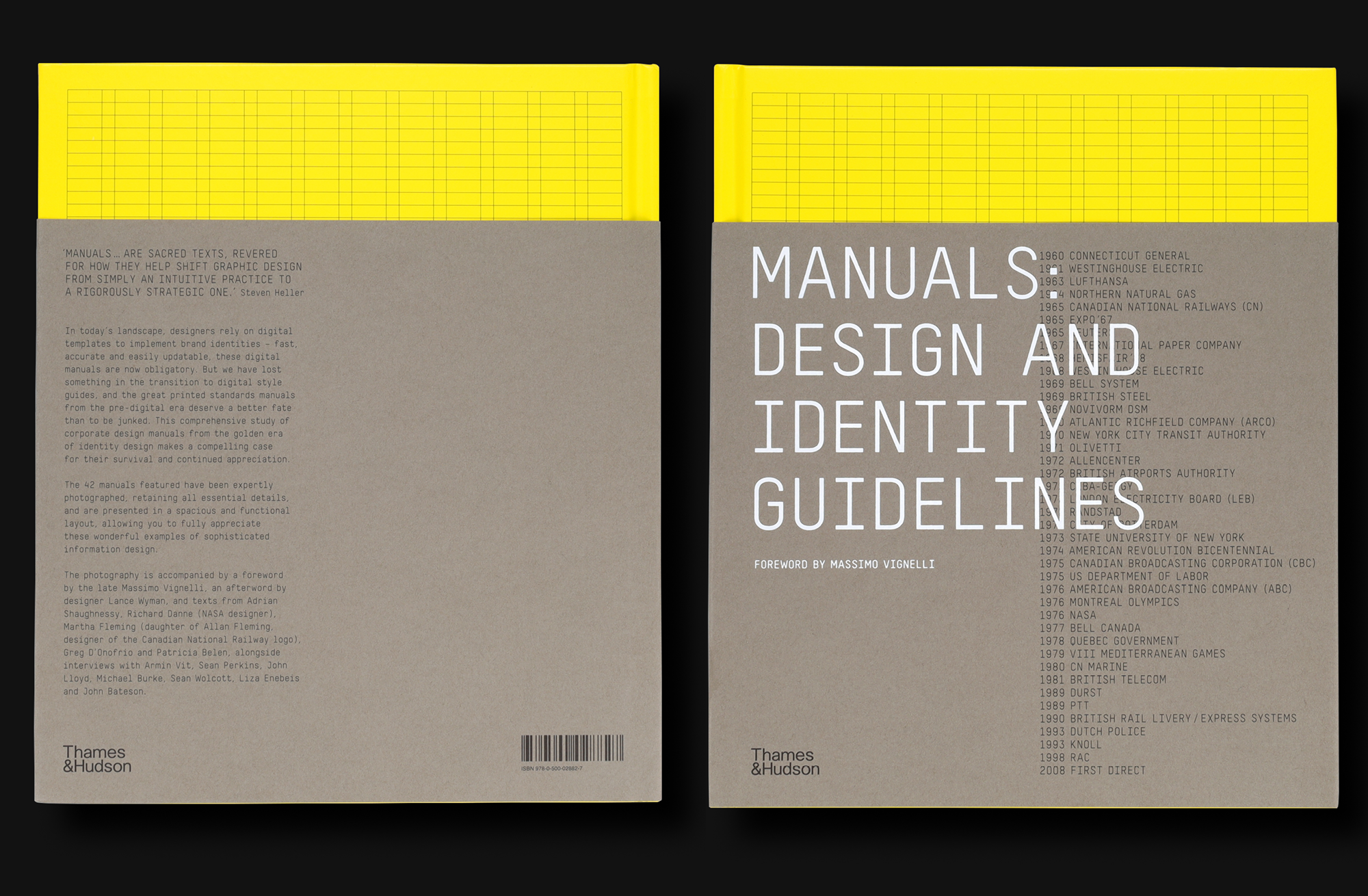 Manuals is a landmark title in graphic design, first published in two volumes by Unit Editions. It presents the most comprehensive study of brand manuals from the golden age of corporate identity. Thames & Hudson republished both books for the first time in a single bumper edition, for which I designed the cover.