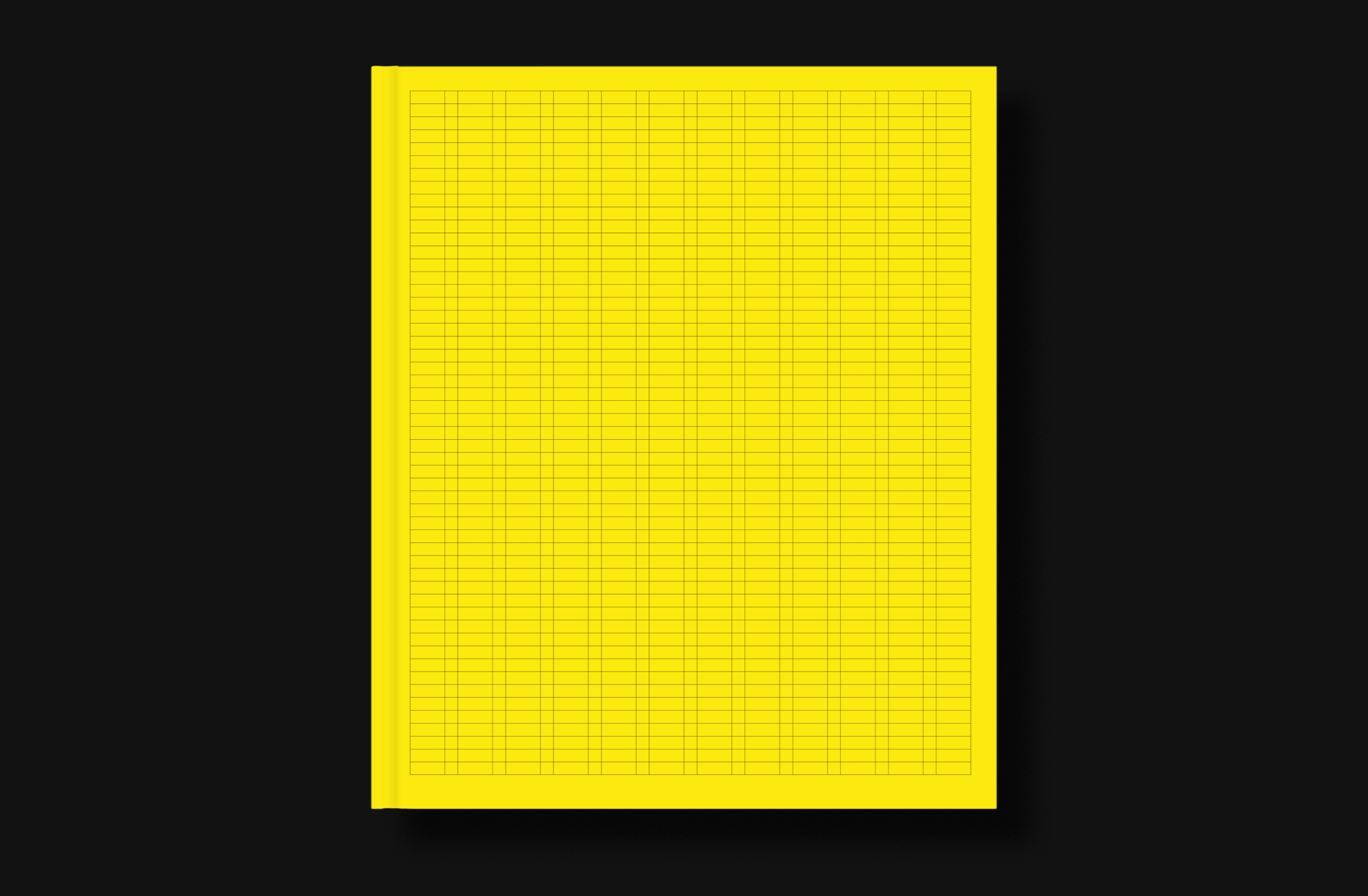 The design layers a foil-stamped jacket – detailing the featured case studies – over a bright yellow case. When the jacket is removed, the book’s interior grid is revealed, tying the object itself to the rigorous design systems it documents.