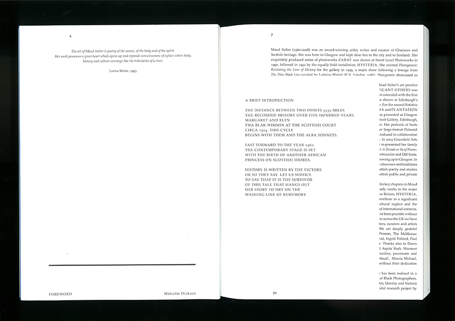 Maud Sulter: Passion is the first sustained publication on the art of Maud Sulter (1960-2008) and artist and writer of Scottish and Ghanaian heritage who lived and worked in Britain. It accompanies the exhibition, Maud Sulter: Passion at Street Level Photoworks in Glasgow, 25 April - 21 June 2015.