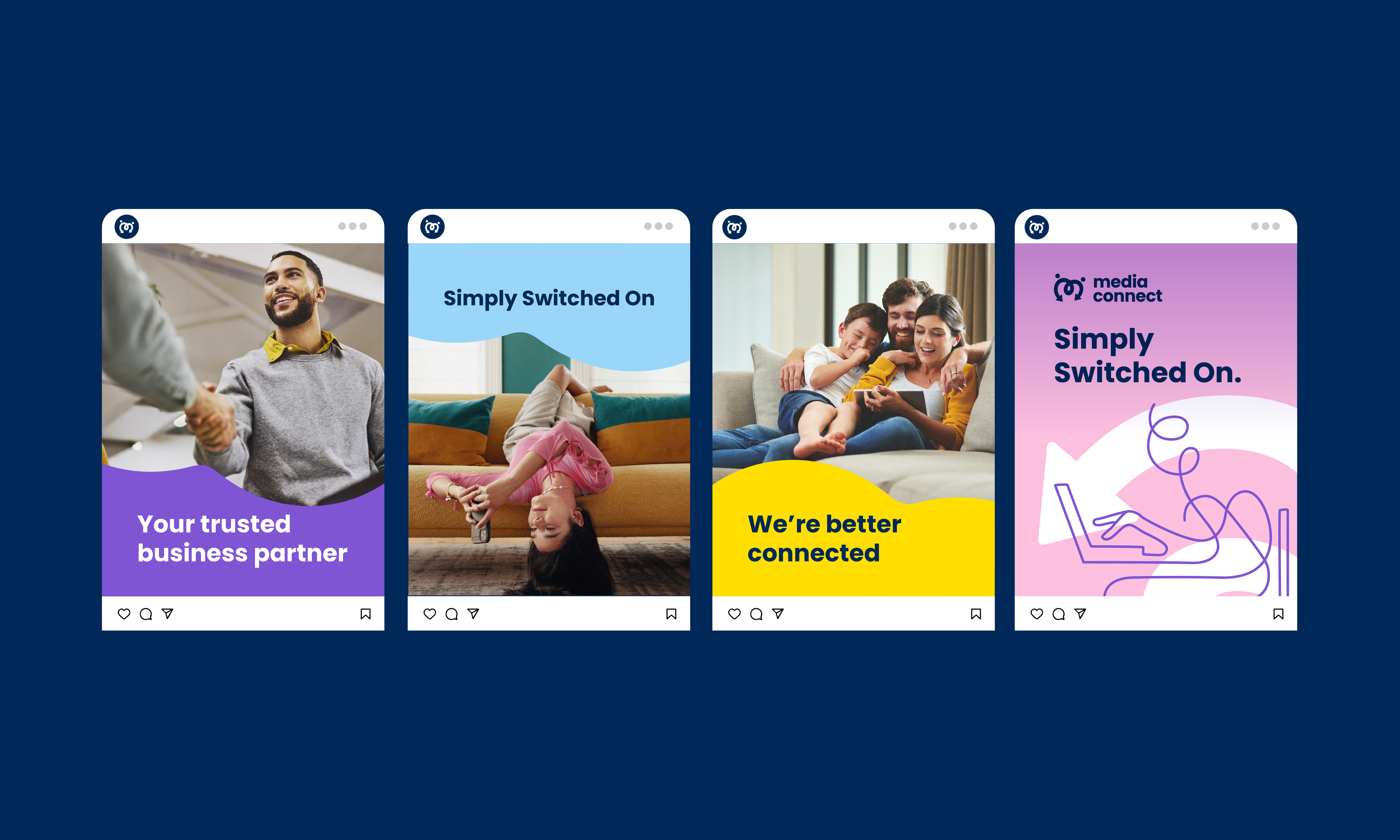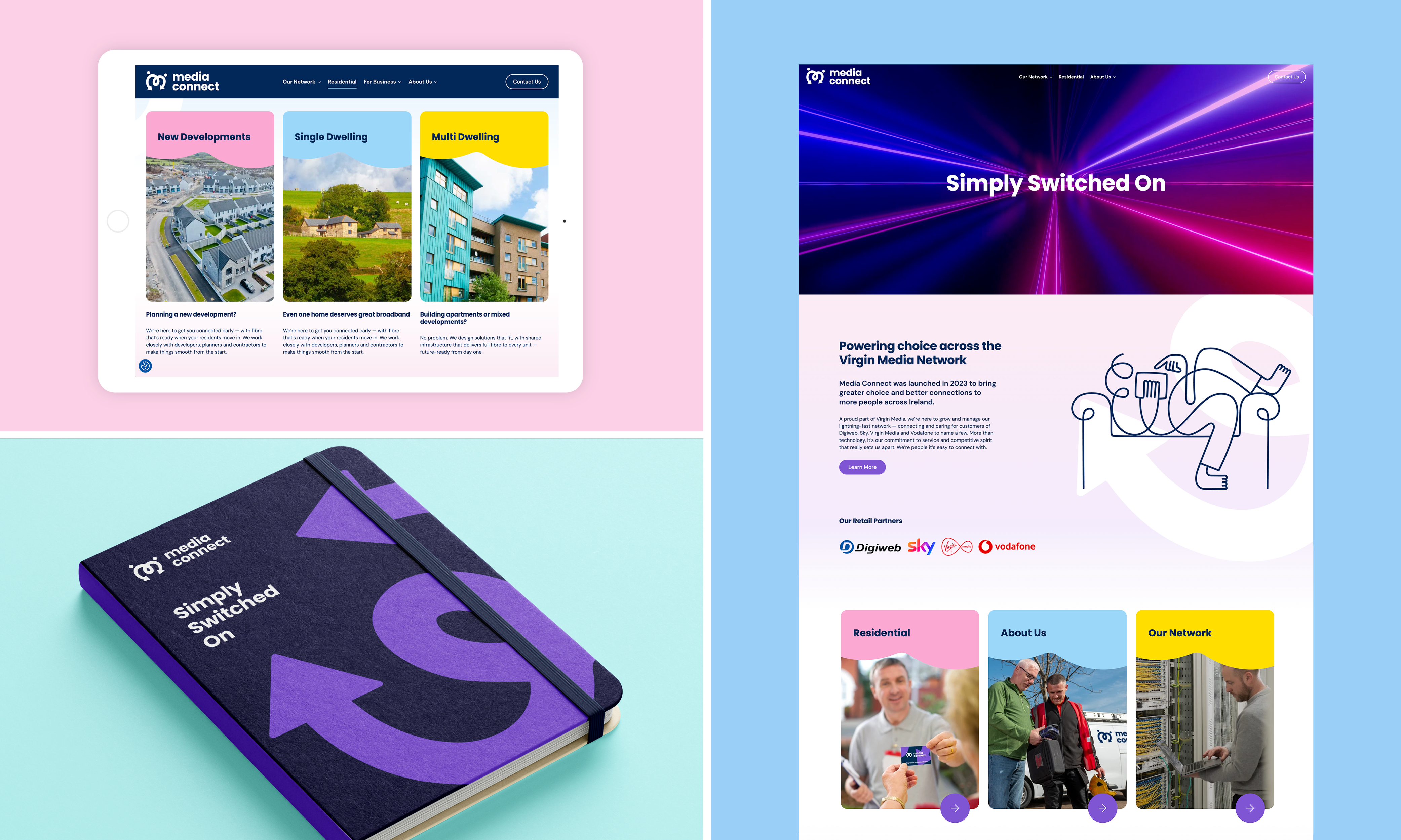 This was further refined with the “Simply Switched On” brand promise, setting Media Connect apart in a competitive broadband landscape. It expresses both capability and approachability, ensuring partners and team members understood what made the brand distinct.