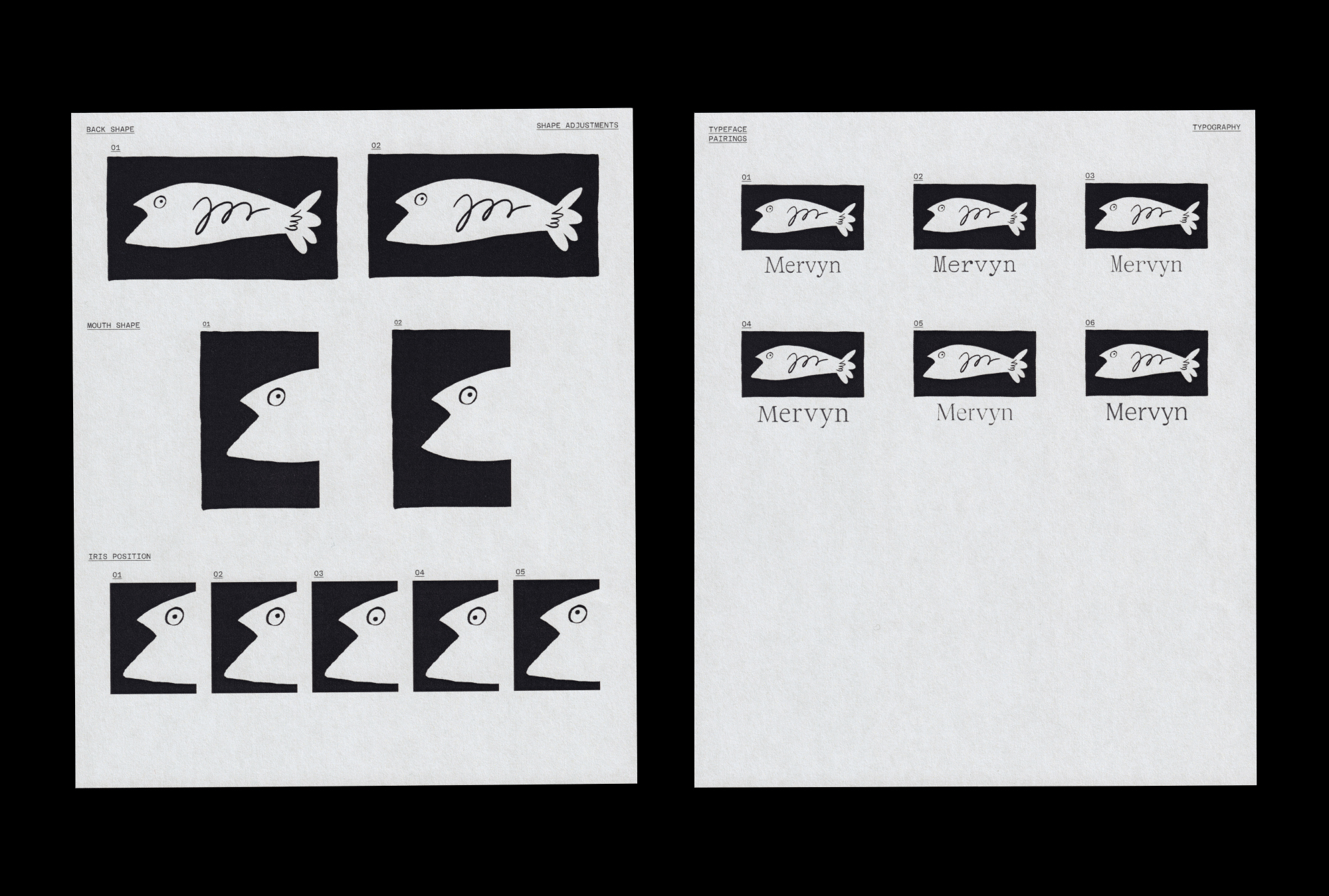 Mervyn is a logomark/identity created for a fishy supper club and restaurant pop-up by Sebastian Skillings. The project aimed to create a friendly, playful and child-like illustrated mark in a wood-block stamp style, for use across social media and printed collateral.