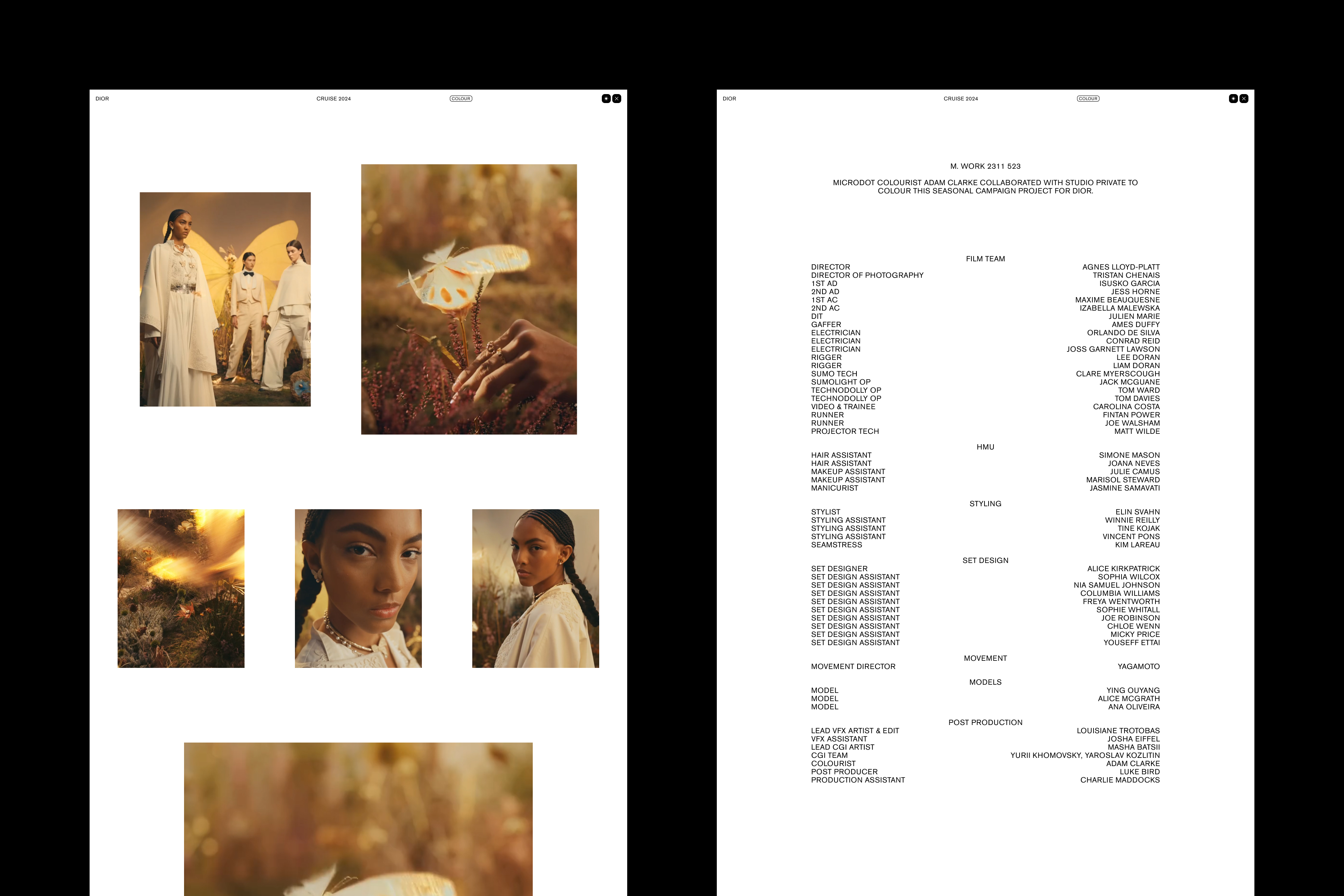 Since launching in London in 2025, Microdot have established themselves as one of the UK's leading post production studios. Their work has appeared at Sundance and Stockholm International Film Festivals, streams on Netflix, and runs in culture-shaping campaigns for Maison Margiela, Nothing and Nike. The team — founded by Adam Clarke, Mikey Smith and Zdravko Stoitchkov — are cinephiles, avant garde artists and technical experts in equal measure — allowing them to push the boundaries of reality in the work they create.