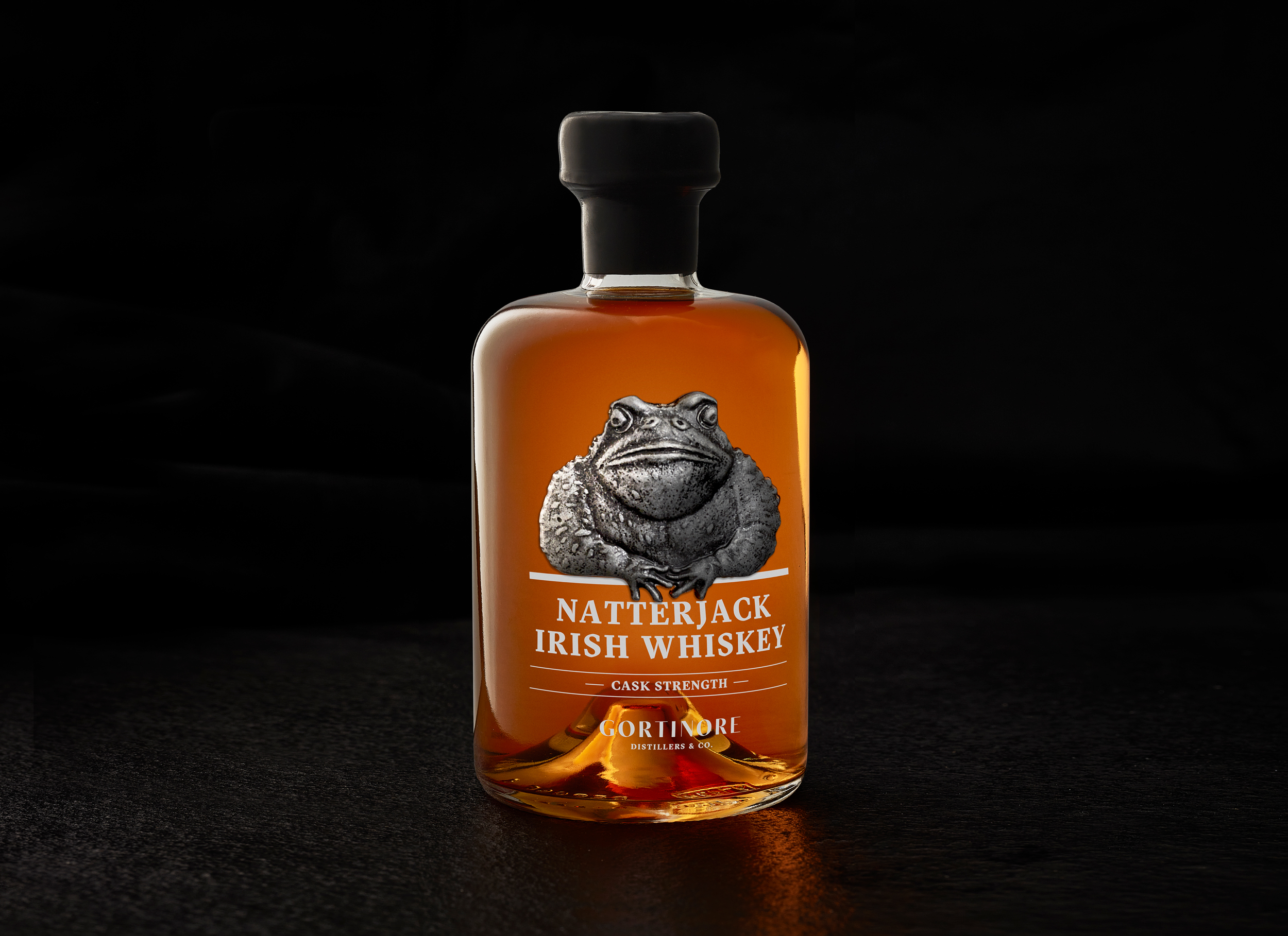 Having worked with us on the Natterjack Irish Whiskey brand and packaging, Gortinore Distillers & Co. engaged us to create special edition packaging for their cask strength release. Limited to a run of 300 bottles, the liquid packs a punch at 63%.