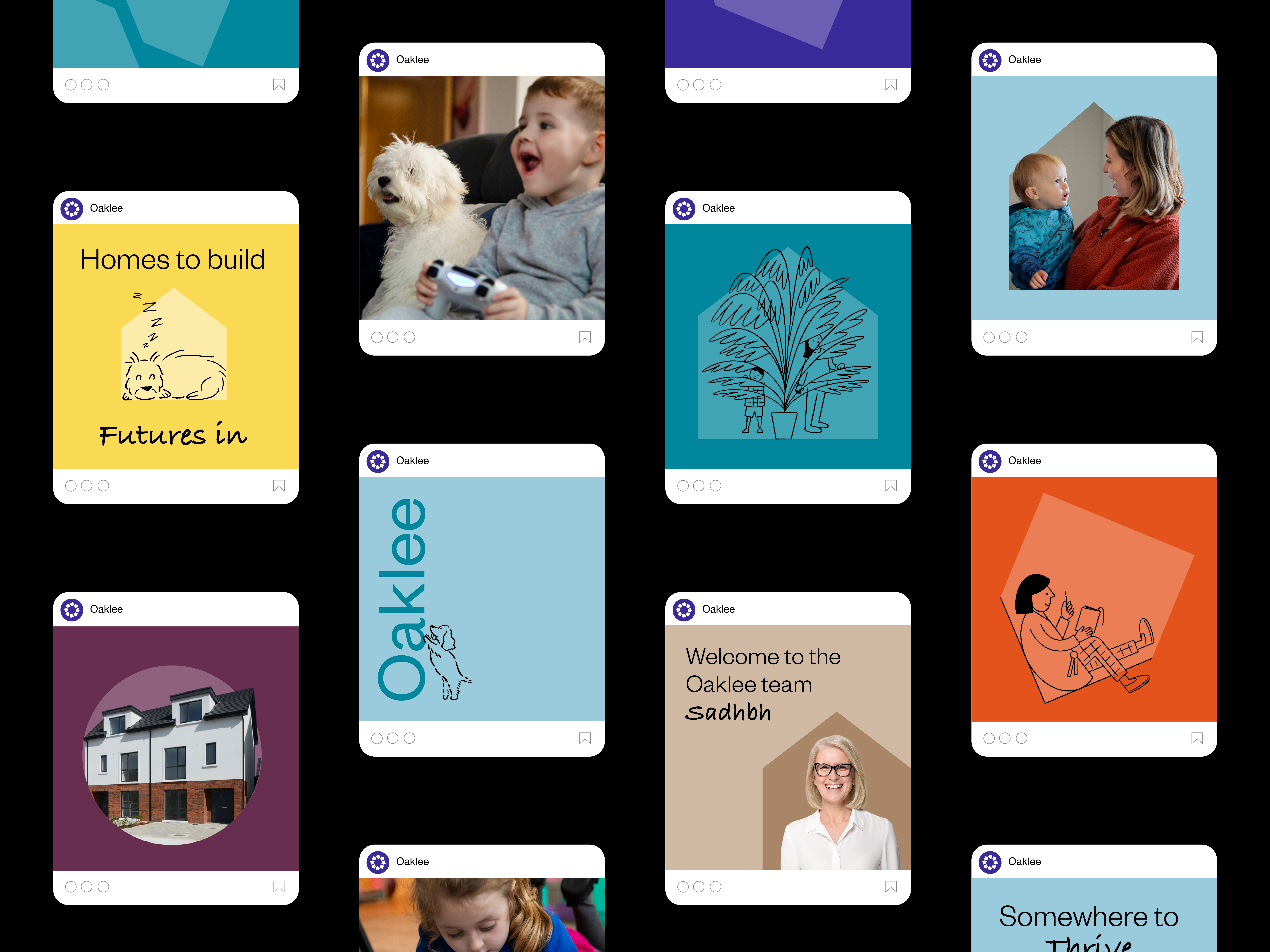 Driven by its mission to build a strong business with a social purpose and to be a foremost provider of quality customer-focused housing and support services, they entrusted us with building a brand that brought to life Oaklee’s care for residents and society at large. We centred the identity around a new promise – Homes to build futures in. As a consequence of the strategy, we renamed them Oaklee from Oaklee Housing, a small change that spoke volumes. This was backed up by an identity that is warm, engaging and above all, honest.