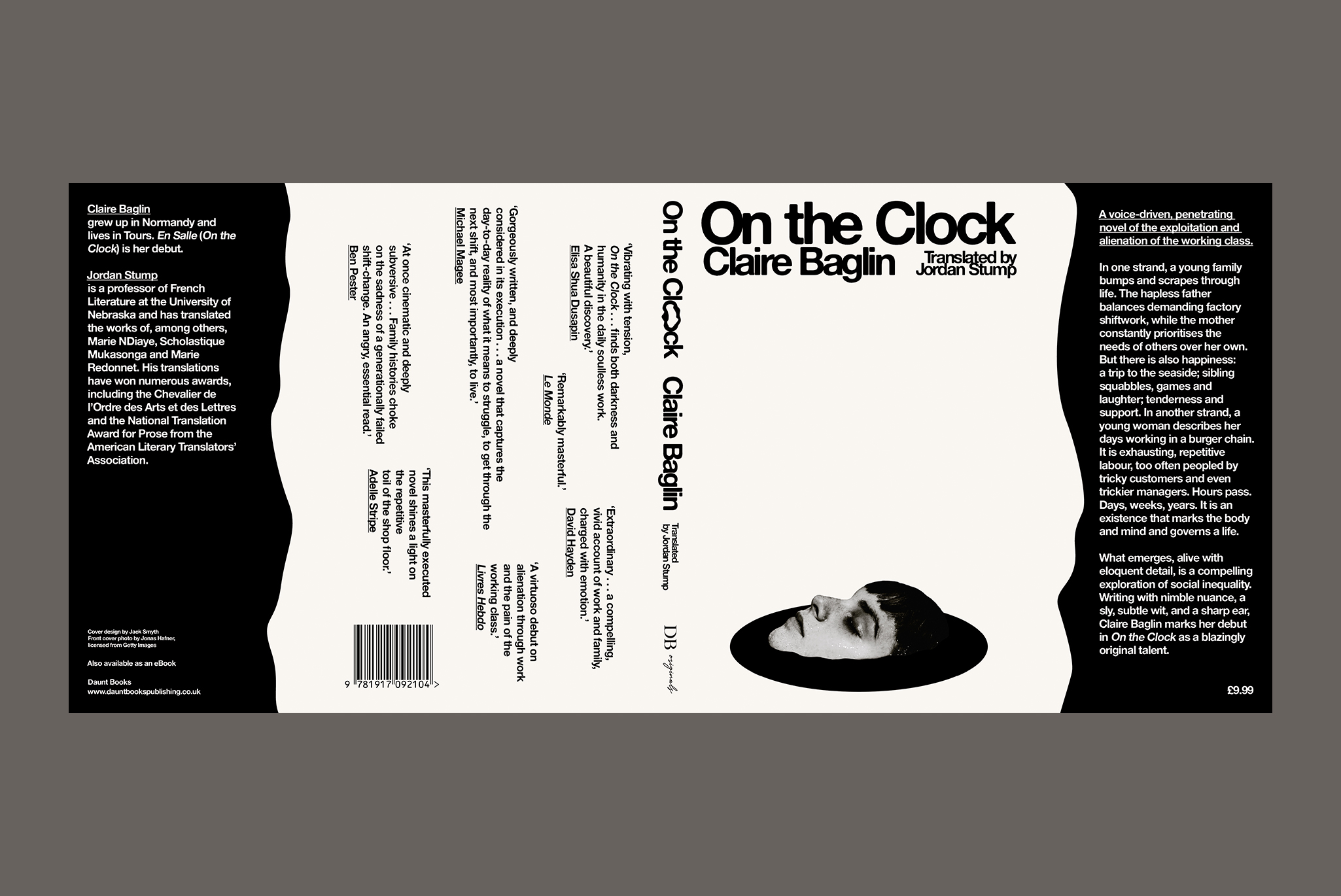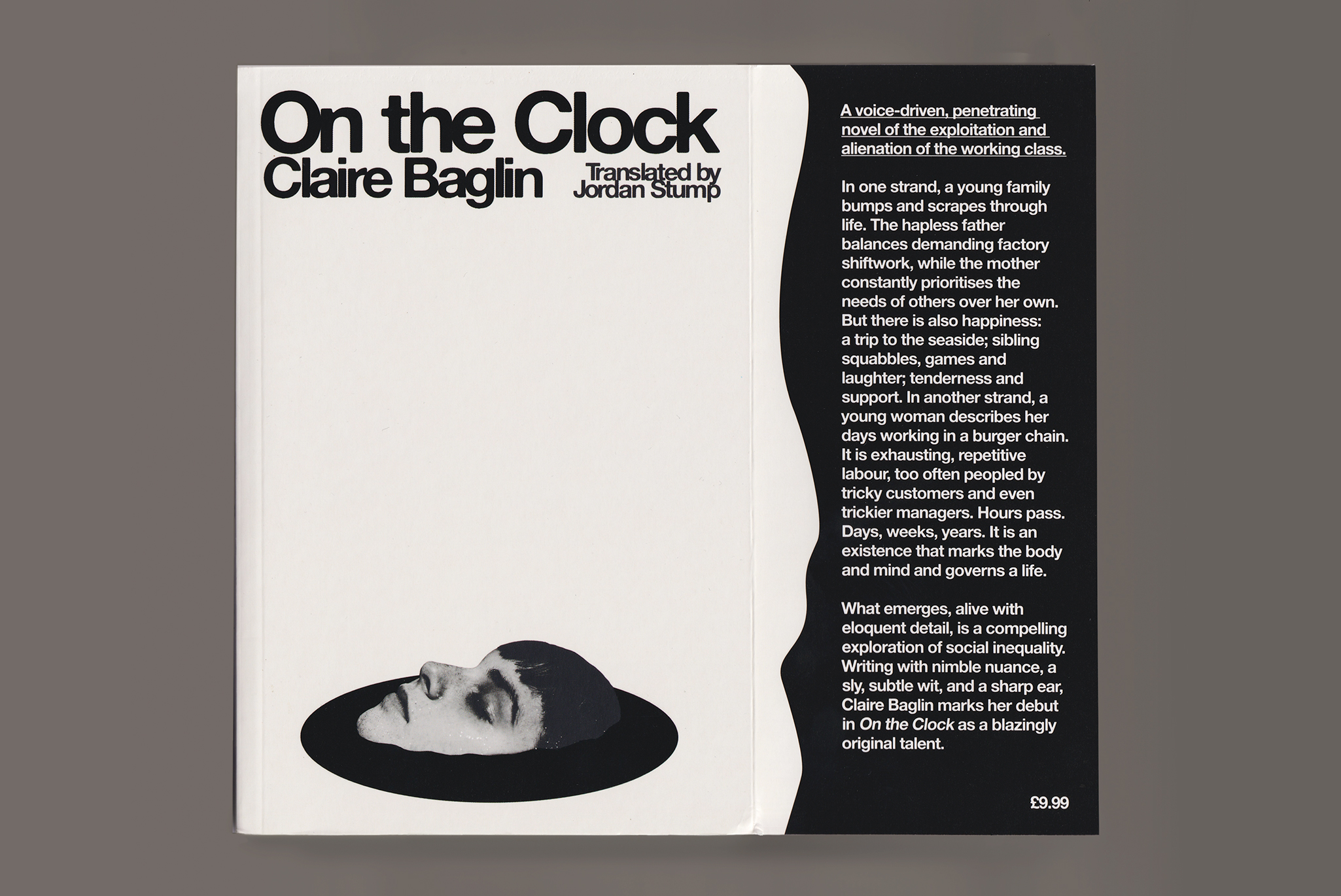 The cover utilises working white, a simple collage and claustrophobic type treatment to give the viewer a sense of the sinking ennui of a life constrained by the prospects of minimum wage work.