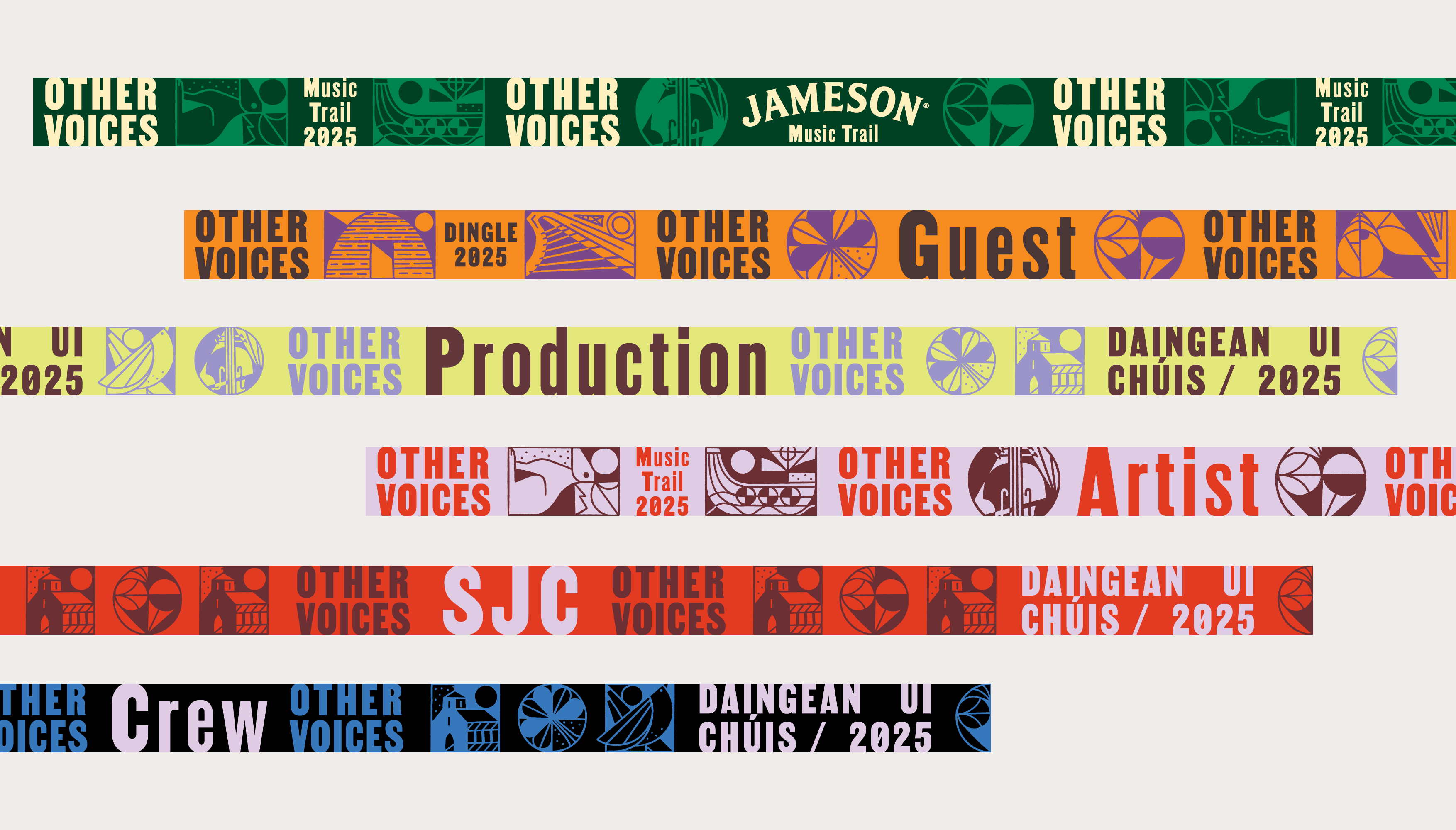 The design reflects the festival’s values, drawing from Irish tradition, design and craft. This was achieved by using typography which was inspired by traditional letterpress posters, hand drawn illustrations, and using a colour palette inspired by traditional Irish folk posters. A series of icons were created for each strand of the festival. The icons were of things that would be found in, or represented, the local area. Each strand is visually distinguished by a colour hierarchy, yet the overall design blends seamlessly into a cohesive identity, reflecting unity amidst diversity.