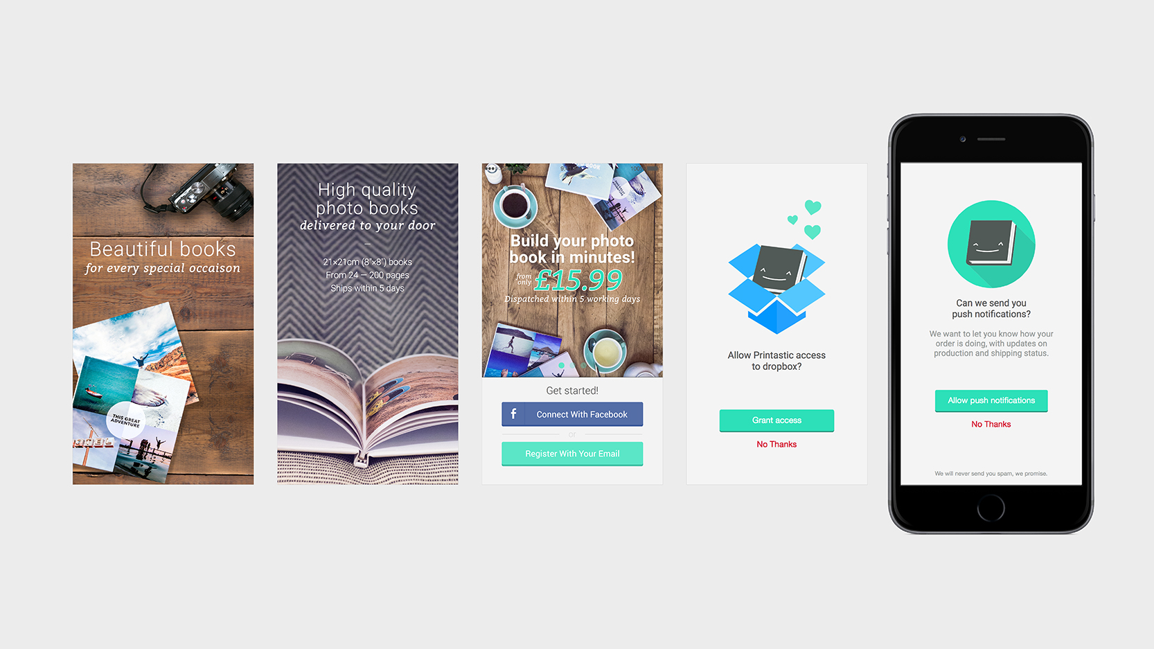 Printastic is a mobile app which allows users to create and order a personalised photo book quickly and easily, while also offering plenty of customisation options. To achieve this balance of simplicity and functionality we needed to eliminate potential friction points prevalent in other similar book printing apps by keeping the flow linear and by making features obvious and easy to use. Help is available throughout every step of the user journey, and the checkout process is very simple and secure.