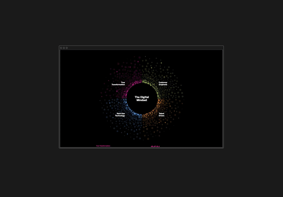 We created an animated infographic webpage for SAP, so they could express the findings of their Digital Transformation Execuetive Study in a clear and engaging way. We focused on creating a central graphic that breaks down the four main sections of a digital mindset. The animation and video elements were also rolled out on social media to promote the study.