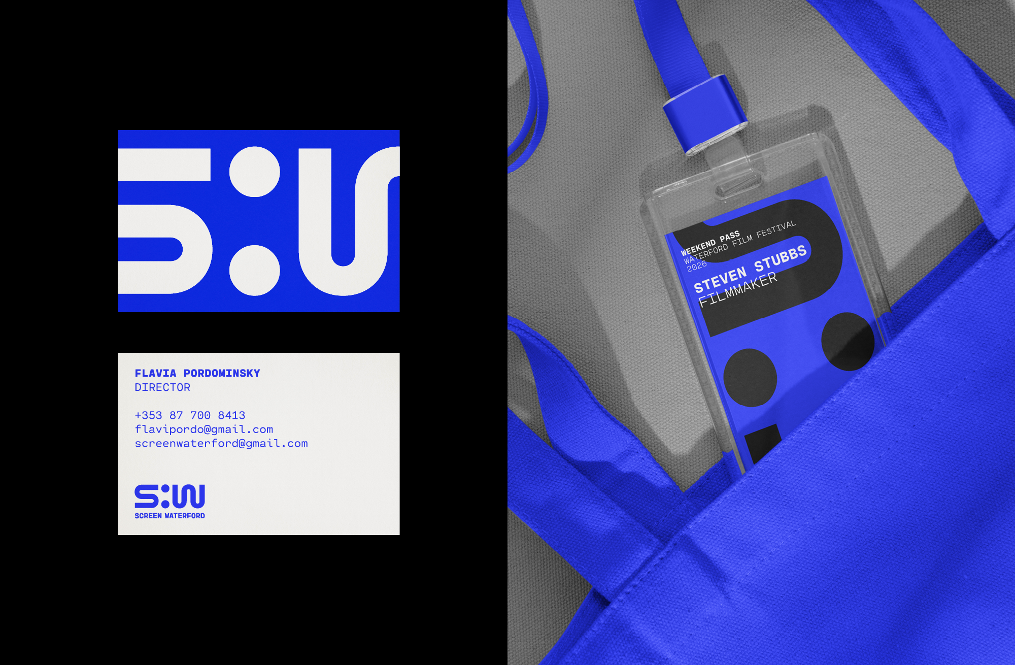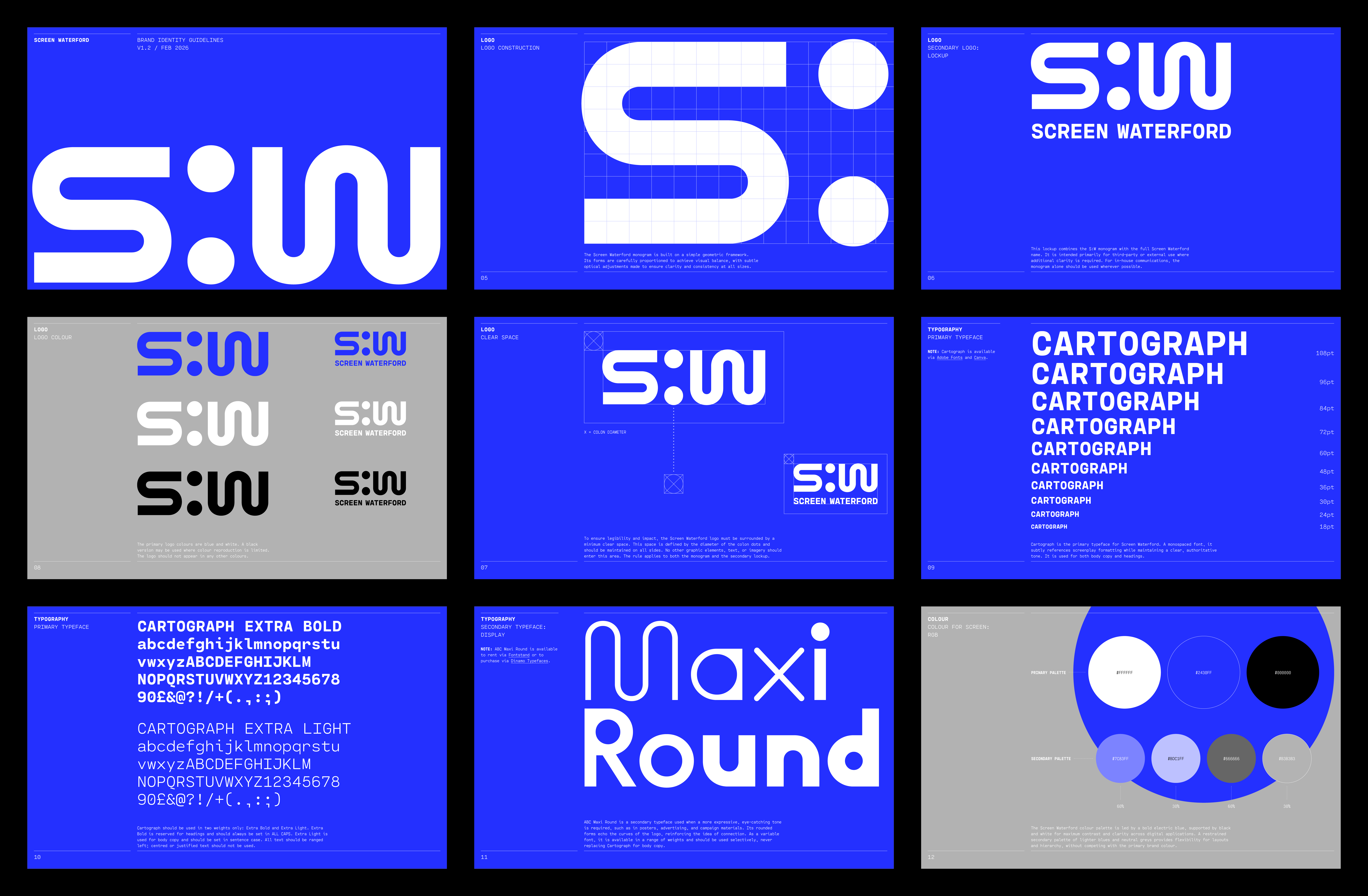 This idea is distilled into a typographic mark built around the colon. Acting as both a symbol of connection and a reference to screen aspect ratios, the colon becomes the conceptual core of the identity. A flexible visual system was developed across print, digital, and environmental applications, allowing Screen Waterford to communicate with professionalism and consistency.