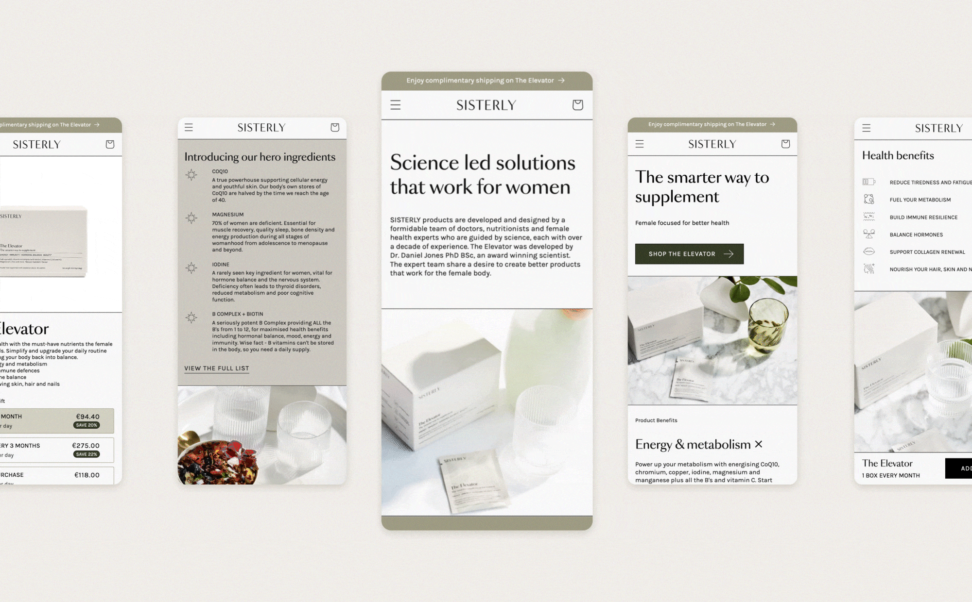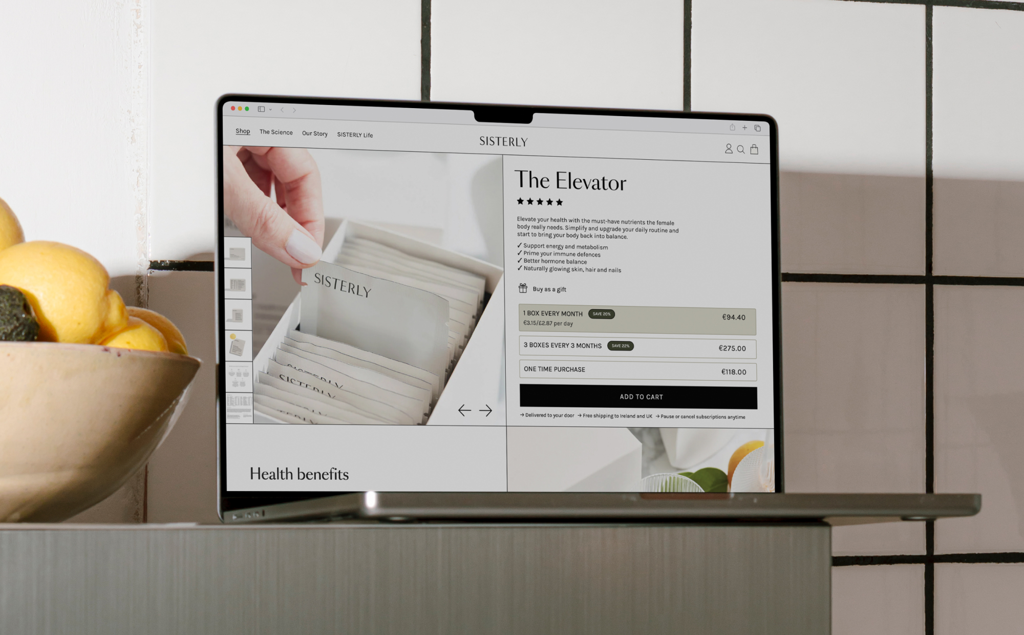 Sisterly have developed premium science-led supplements designed to specifically target and support female health. An innovative business model taps into new customer expectations, and combines a direct to consumer ecommerce model, with a multi-option subscription platform.