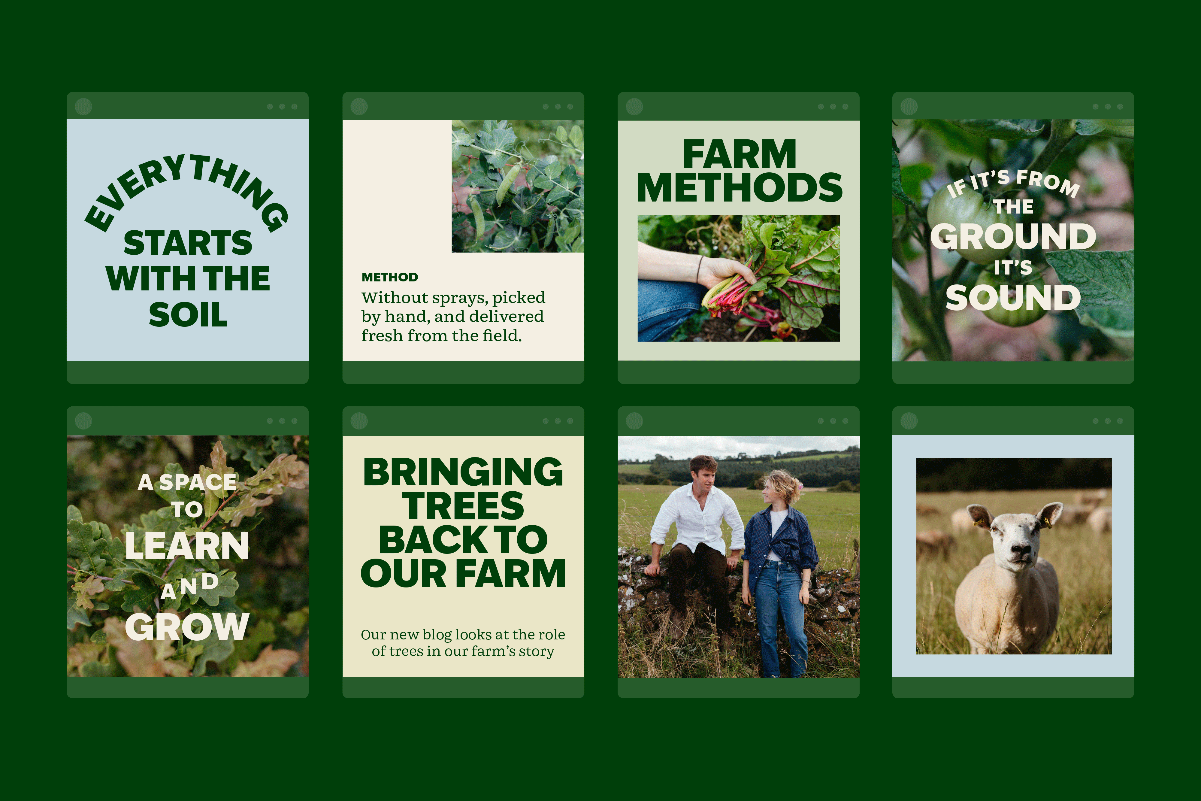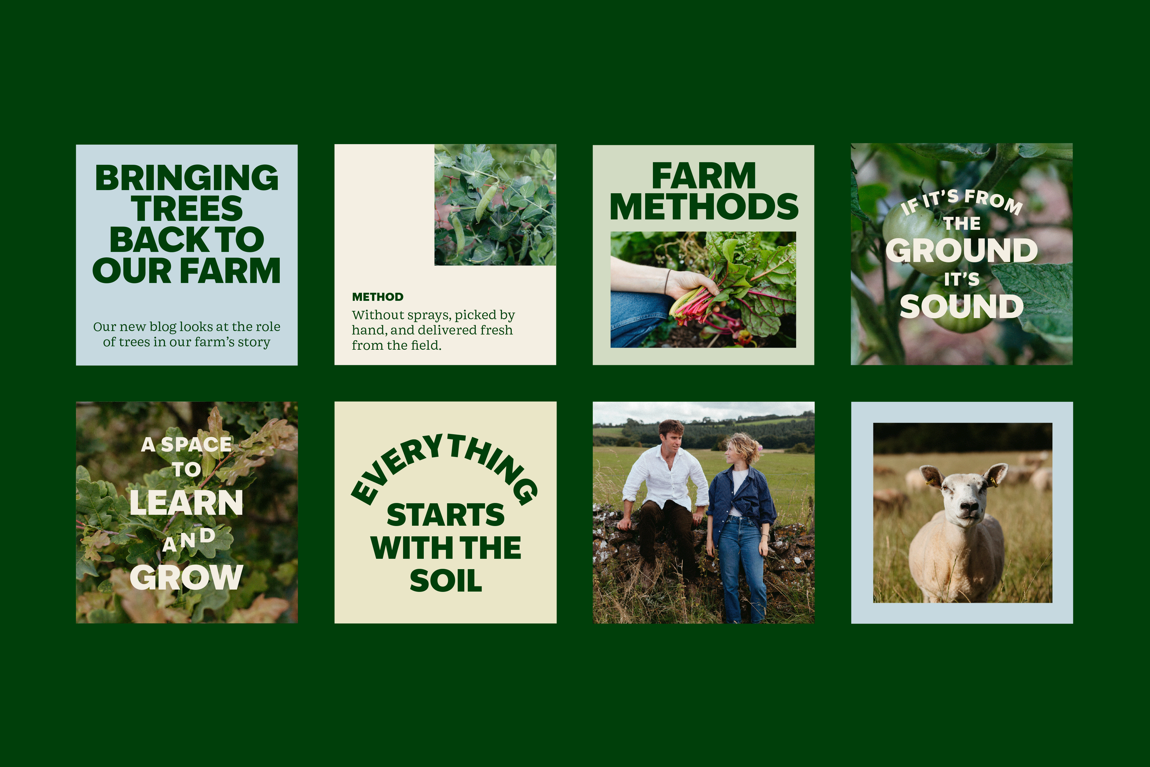 The farm has a lot of moving parts, from livestock and veg boxes to workshops and everything in between. We worked closely with Fintan and Liefe to understand how the farm operates and where they wanted to focus. From that, a clean and flexible brand was developed that could stretch easily across different areas of the business without losing clarity.