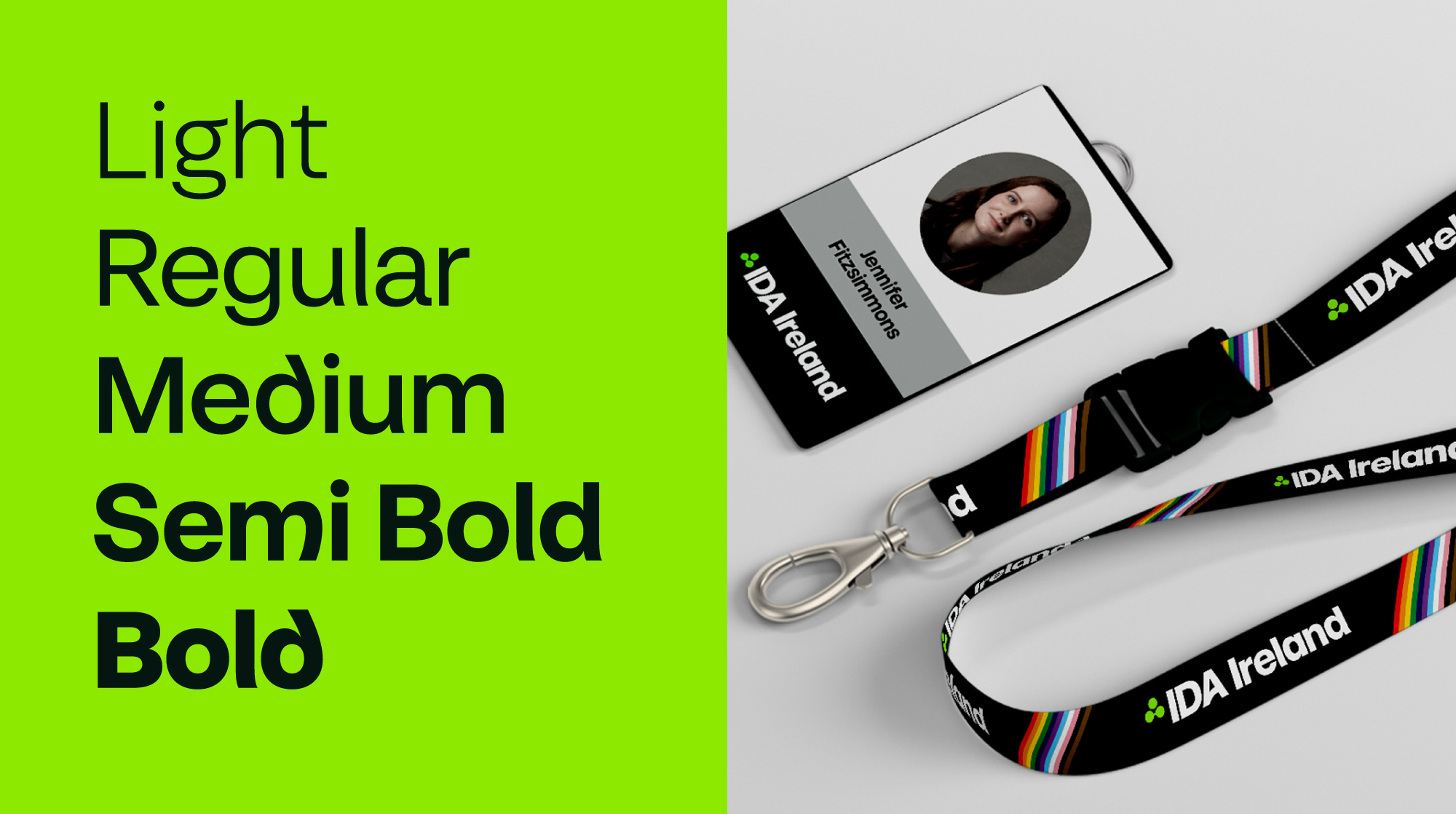 In the process of rebranding IDA Ireland, a key objective was the development of a contemporary typeface that harmoniously blended business professionalism with a modern Irish aesthetic. Emphasising legibility, readability and accessibility, our inspiration drew from the clean and sophisticated design principles observed in minimalist modern business brands.