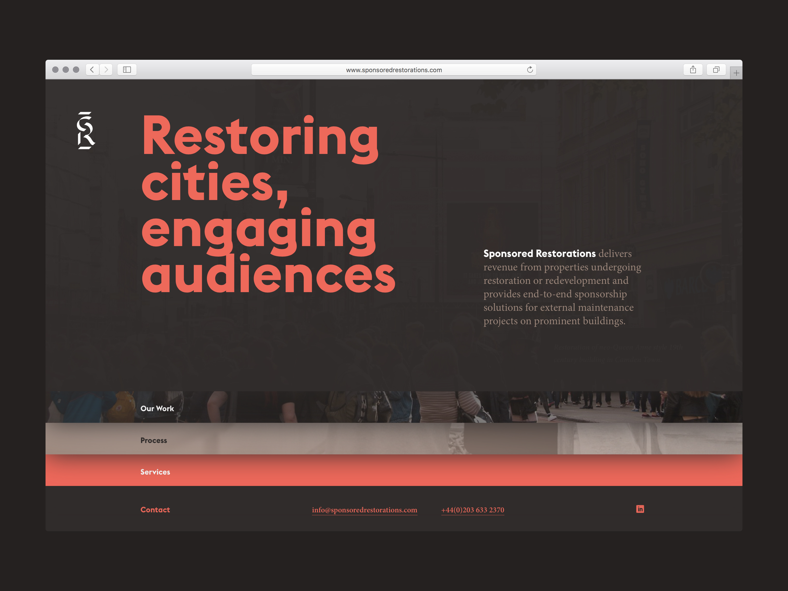 Sponsored Restorations connects building owners in London with media buyers, using the revenue generated from large-scale temporary advertising to renovate and maintain the city’s historic buildings.