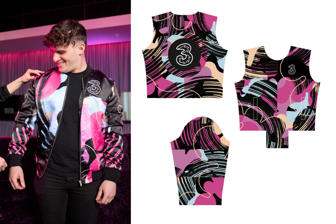 Rooted in bold colour palettes, layered illustration and expressive, screen-print-inspired textures. The final MC Uniforms serve both practical and expressive roles: they outfit venue staff in a way that enhances brand presence and creates a visually vibrant atmosphere for attendees. The project demonstrates how design can elevate everyday branded clothing into a compelling part of the event experience, fostering positive interactions and reinforcing identity through creative collaboration.