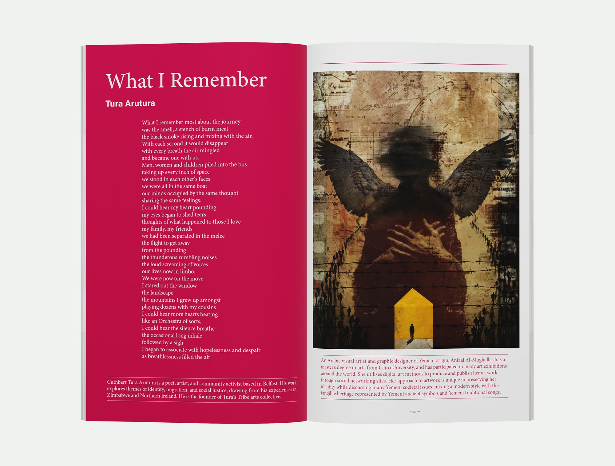 Nandi Jola's issue focuses on themes of migration, memory, and breath/breathlessness. From the editor: ‘Breath has that lingering sense of travelling somewhere, of being inhaled by something or someone else, and by unravelling the connections of breath comes topics of seeking refuge, drowning, injustice, citizenship, and forced migration.’